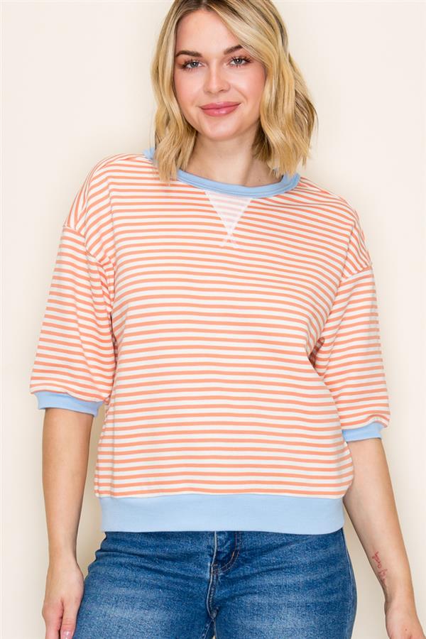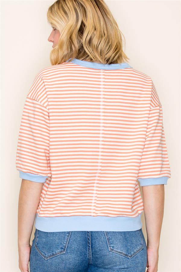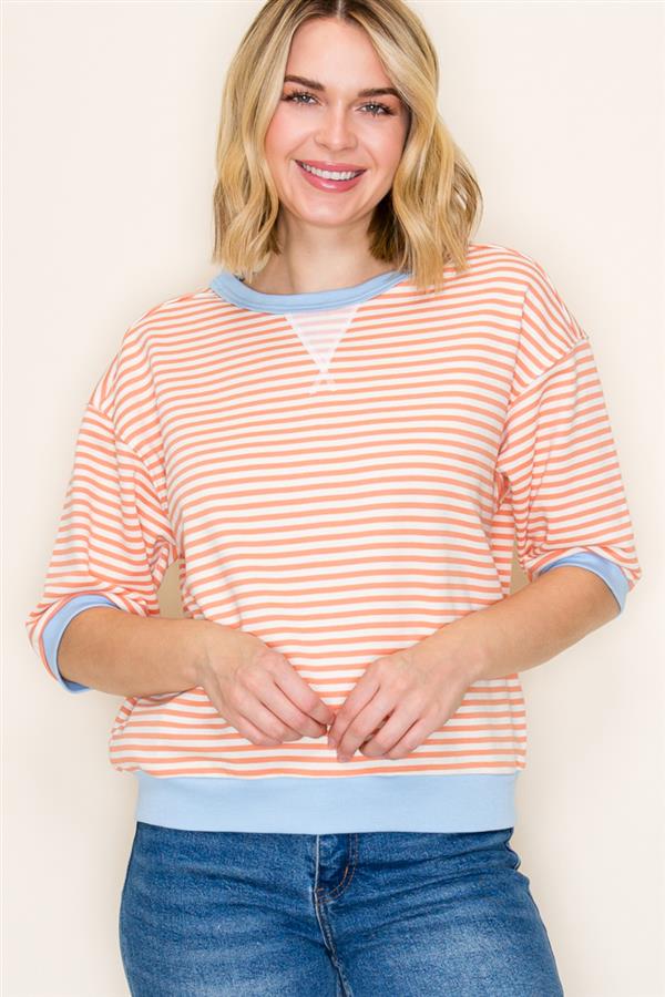 Easy, comfortable, and effortlessly cute, the Brea Knit Striped Top is one of those pieces you’ll reach for on repeat. The classic stripe pattern paired with contrast banding gives it a fresh, laid-back look that feels polished without trying too hard.