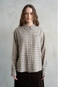 Classic meets cozy in the Carly Windowpane Button Down. Crafted from soft brushed cotton, this shirt features a clean windowpane pattern with a relaxed fit and dropped shoulders for everyday comfort.