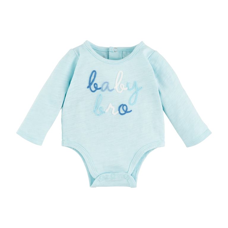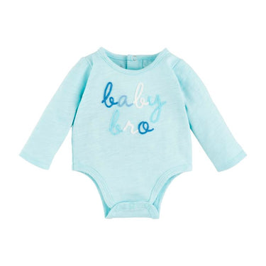 Announce your little one's new role with this adorable "Baby Bro" crawler onsie. Made from 100% soft and breathable cotton, this onsie is gentle on baby's sensitive skin and perfect for everyday wear. [Optional: Add details about the design, e.g., "Featuring a playful font," or "With a cute graphic."]. Snap closures make diaper changes easy.