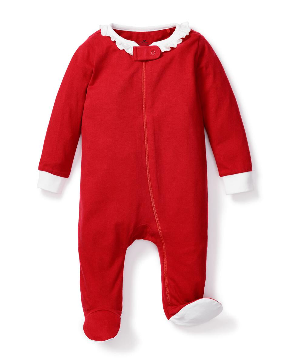 An understated and serene romper for your little angel in festive holiday red with white ruffled trim. Comfort and irresistible design align perfectly in our rompers for baby’s first holiday.