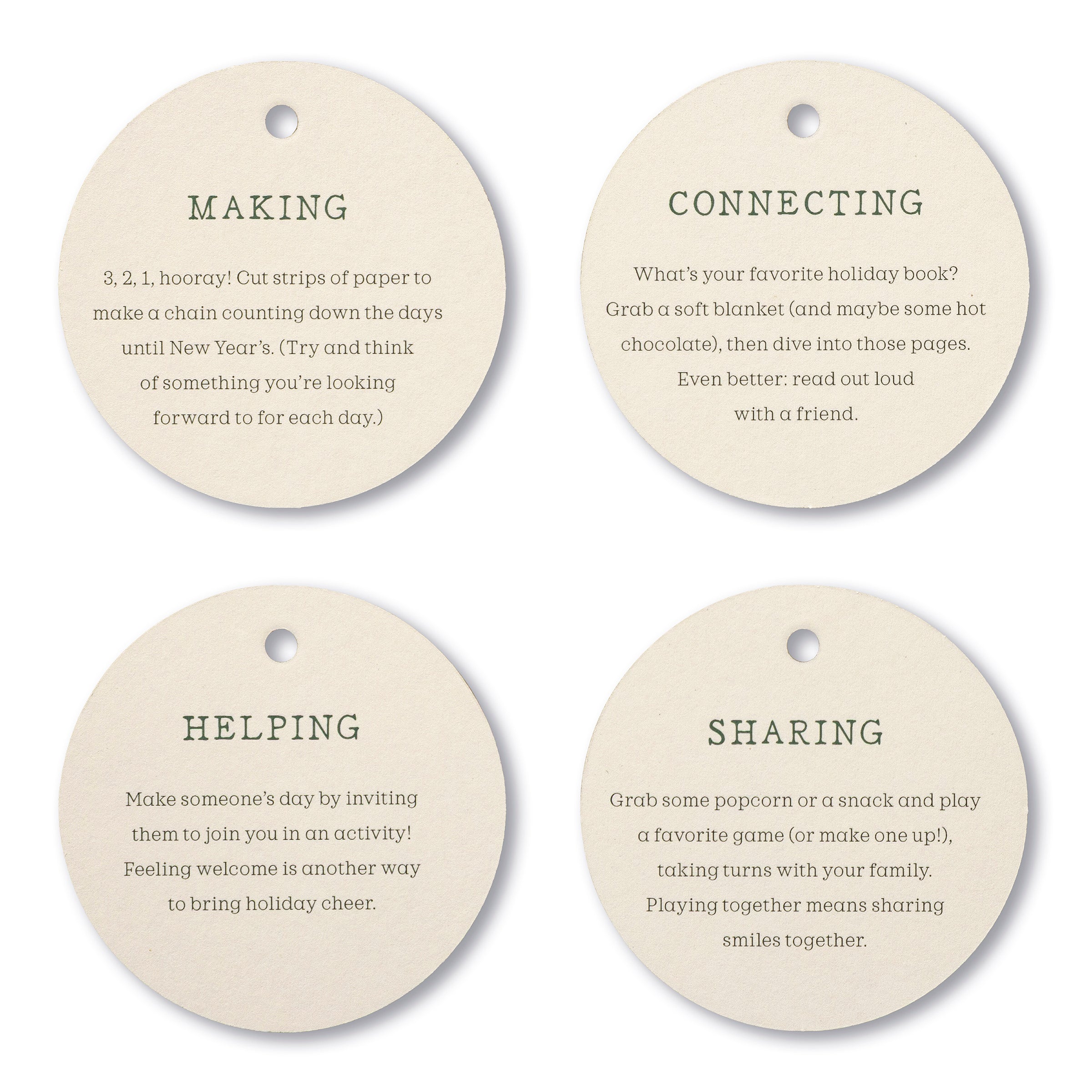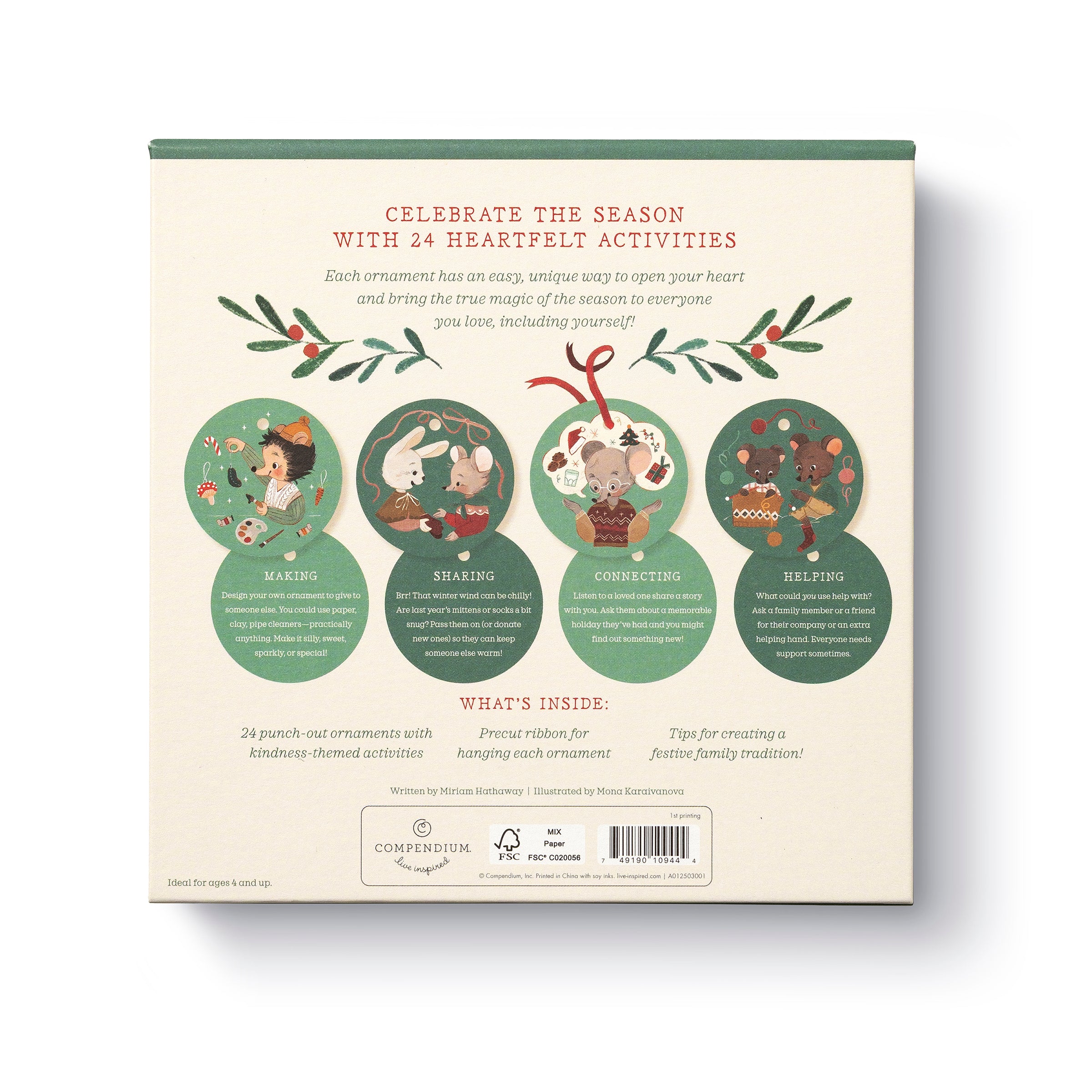 Much of the joy of the season comes from giving, sharing, and showing love. This festive gift set makes it easy for families to do just that. Inside, you’ll find 24 punch-out ornaments, each with a simple, thoughtful kindness activity printed on the back.