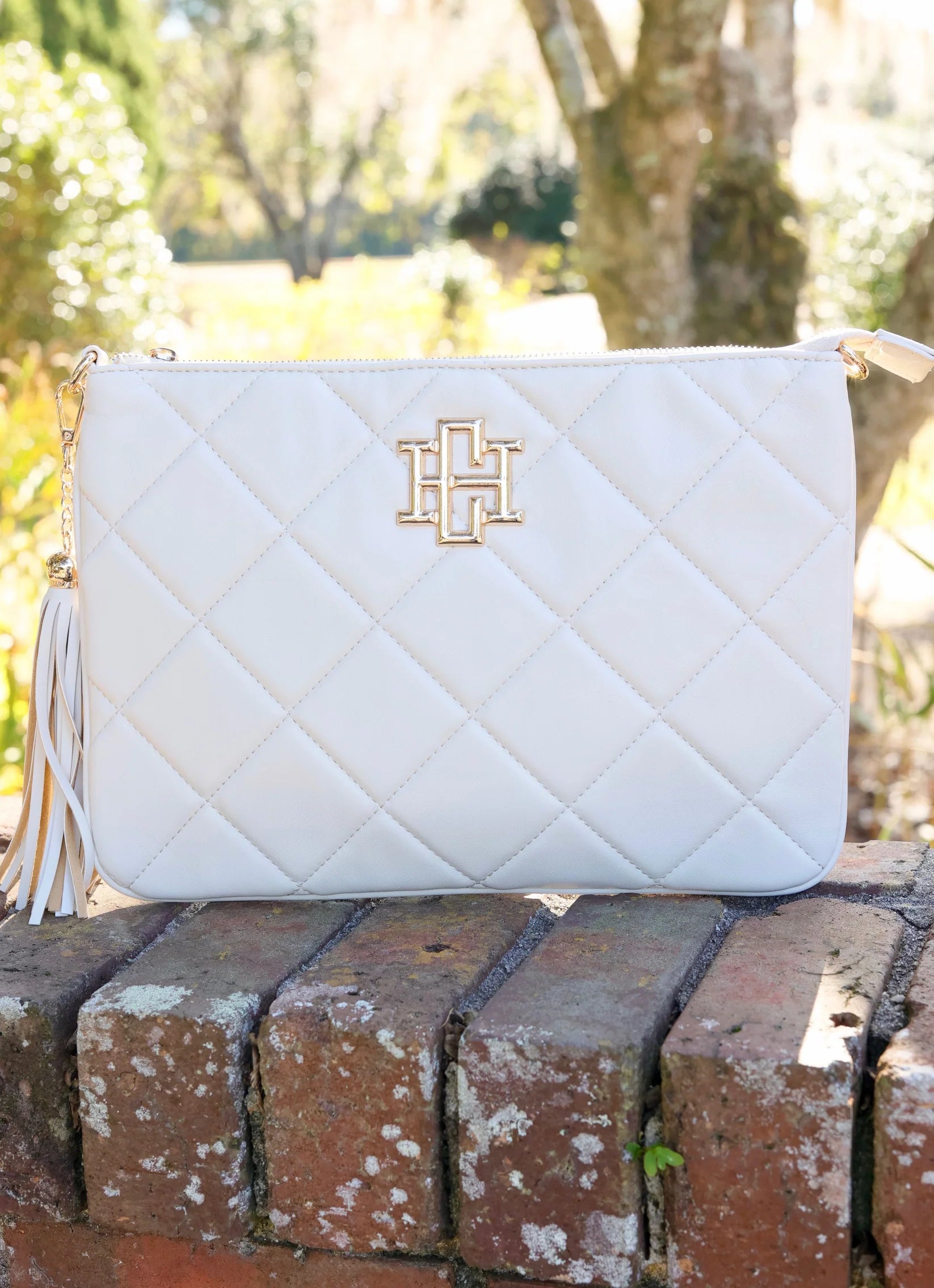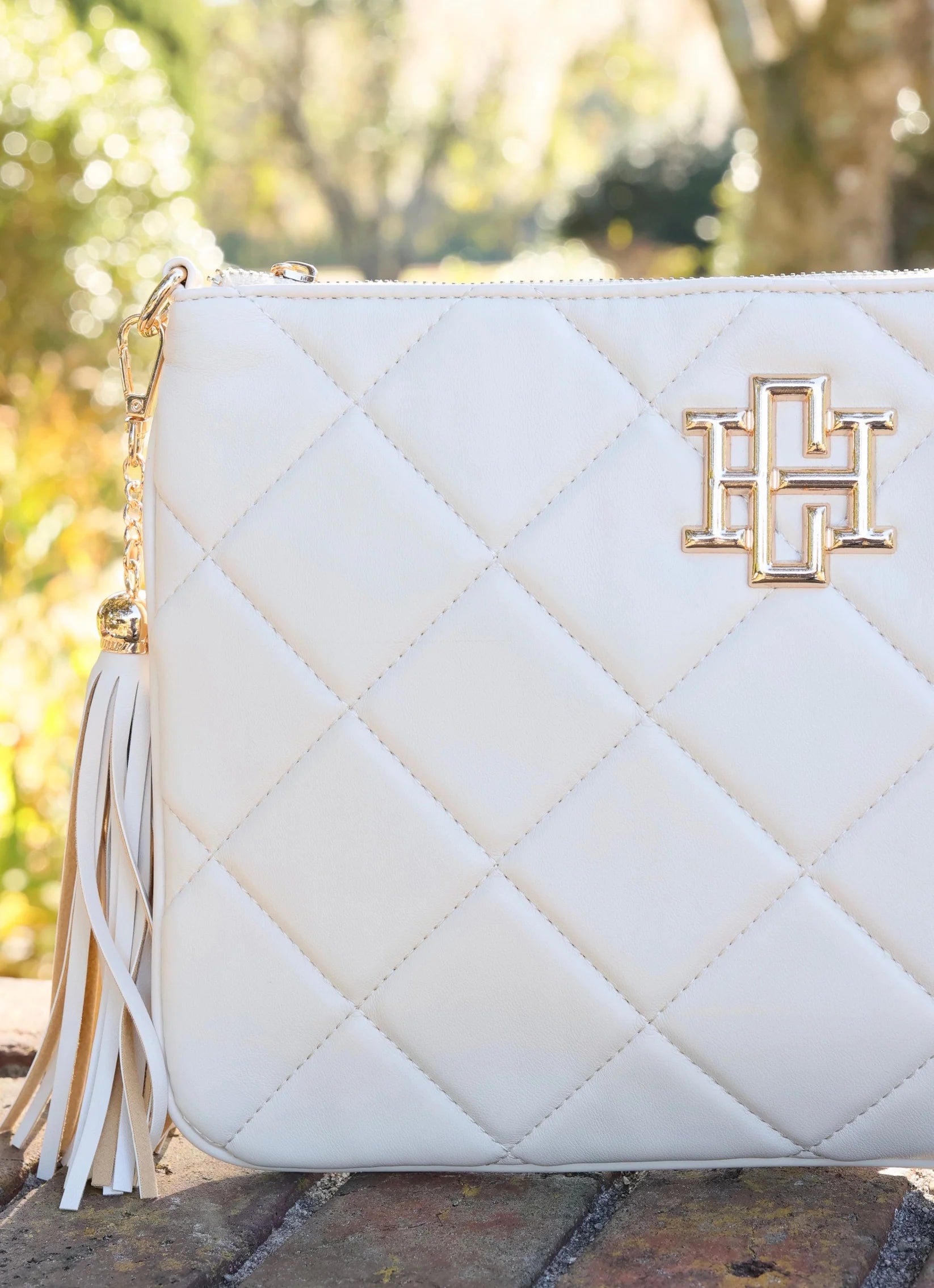 "Okay, so if you're looking for a crossbody that can do it all – everyday chic or dressy glam – you need to see the 'Madelyn Crossbody' in Cream Quilted!