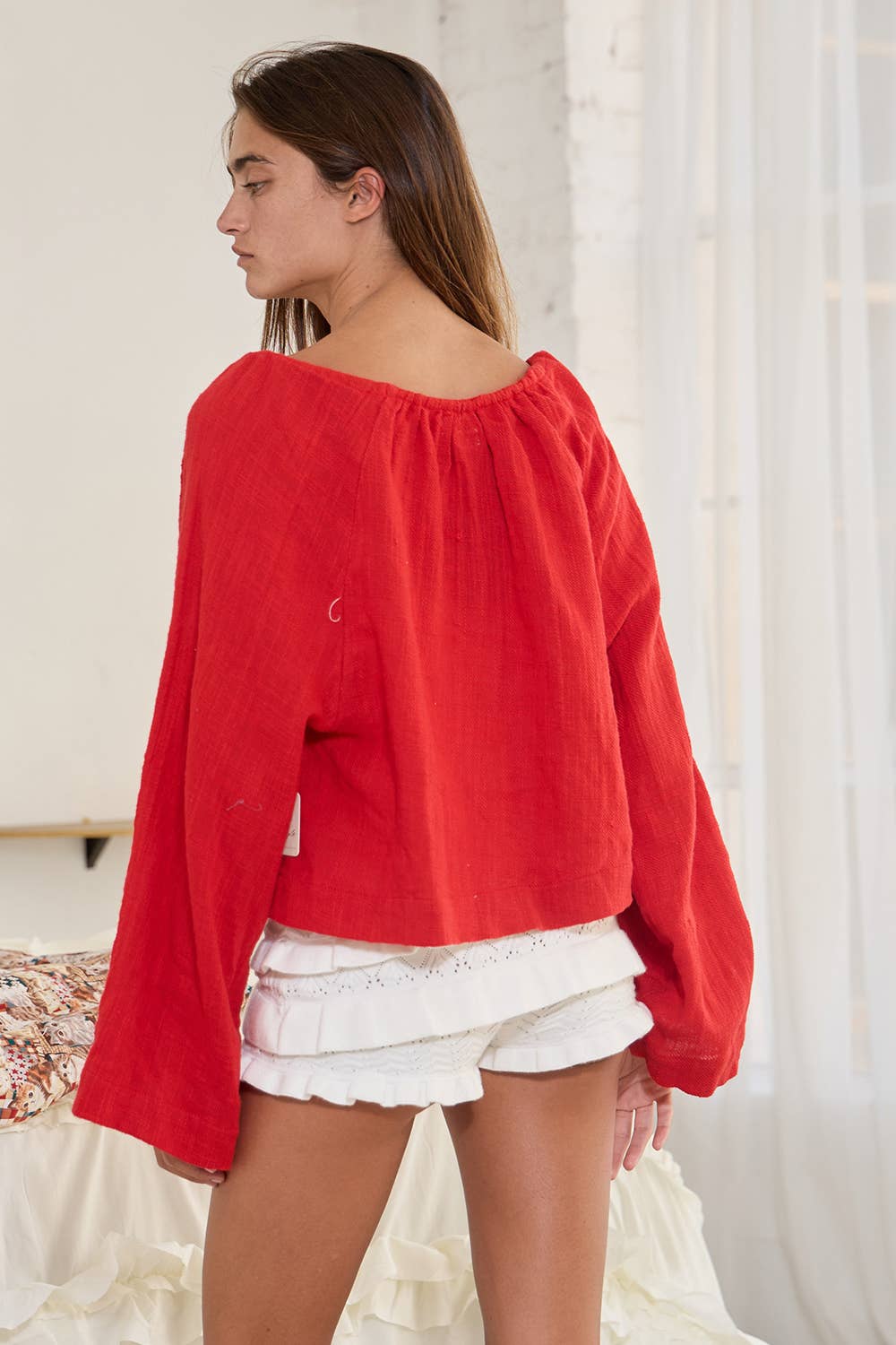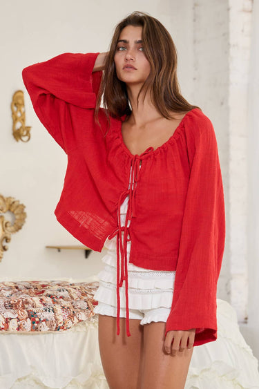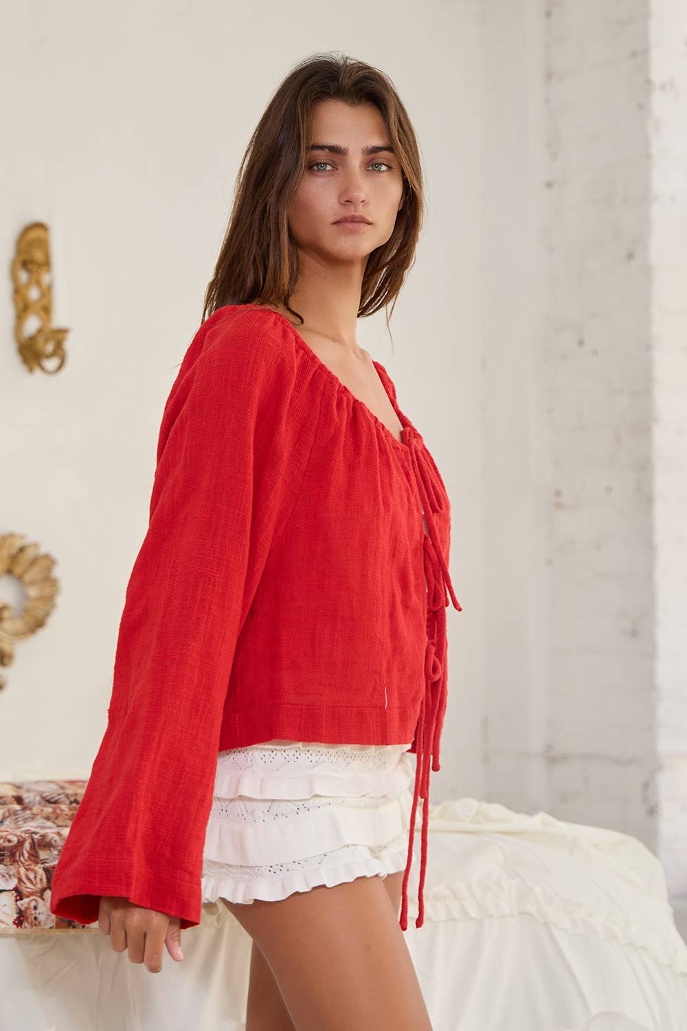 Add the Reyna Tie Front Solid Textured Blouse to your closet for a piece you'll reach for again and again!