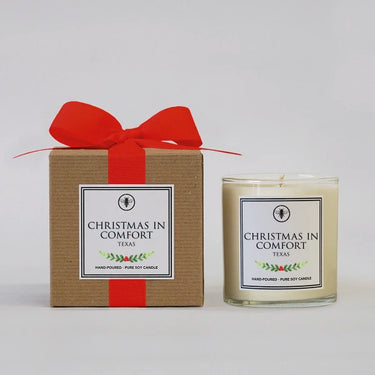 The Christmas in Comfort Candle celebrates the magic of the holidays in our charming Texas Hill Country town. Hand-poured in an 11 oz. jar, this candle features Fragrance No. 2: Cinnamon & Nutmeg, a warm, nostalgic blend that instantly evokes the joy of Christmas gatherings, spiced treats, and cozy nights by the fire.