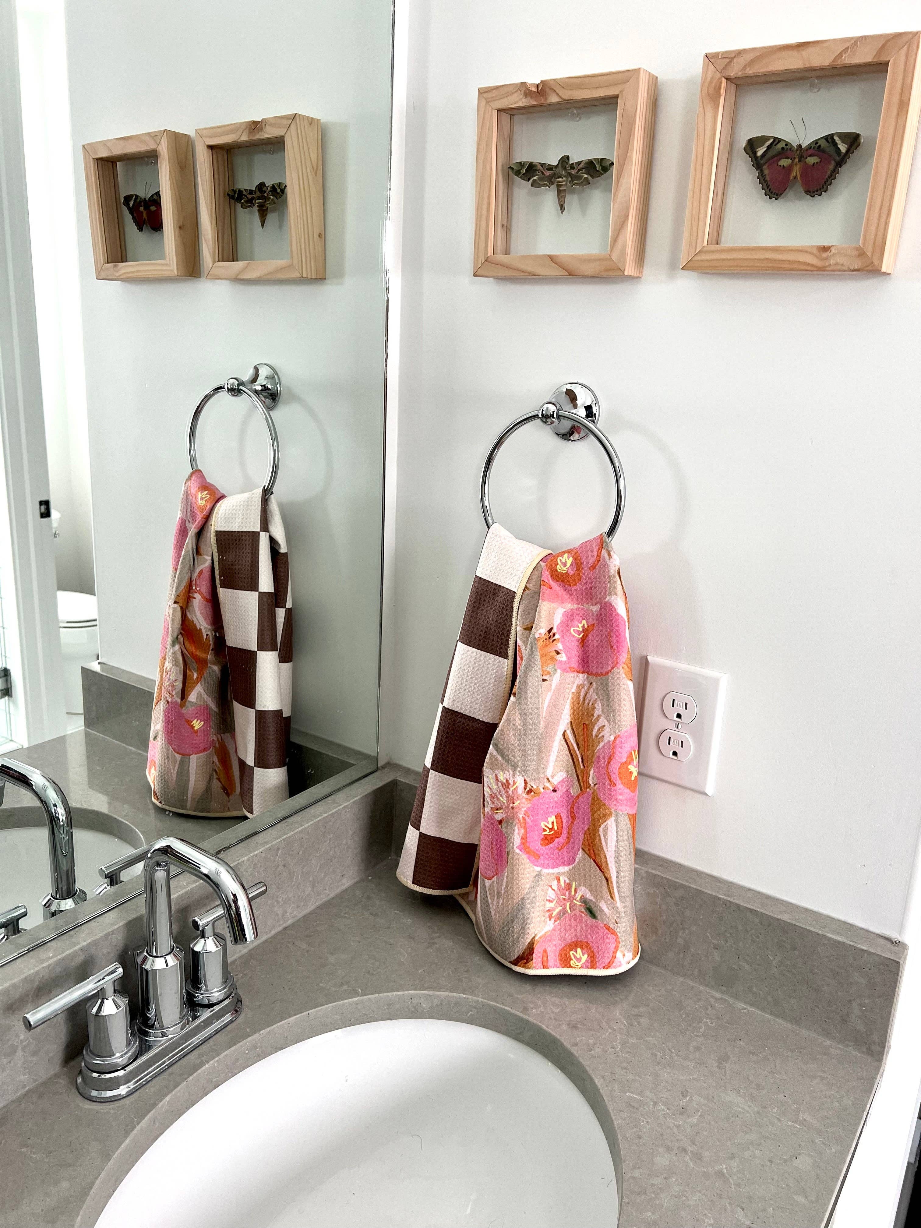 Sometimes it’s the little details that make a space feel pulled together. The Reeds Reversible Hand Towel adds a fresh, thoughtful touch to your sink with complementary patterns on each side, giving you two pretty looks in one hardworking towel.