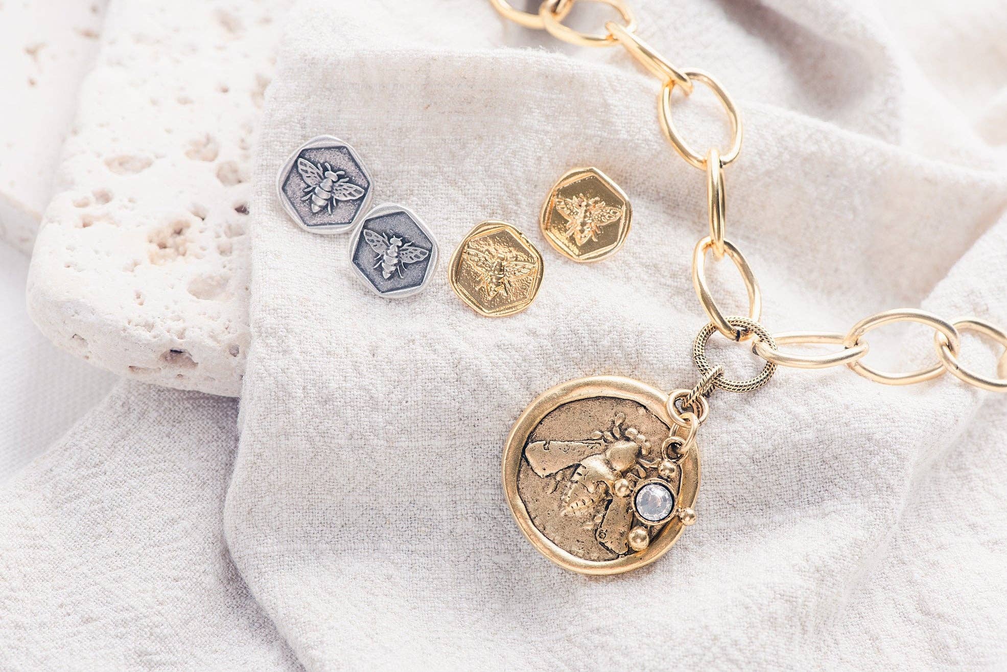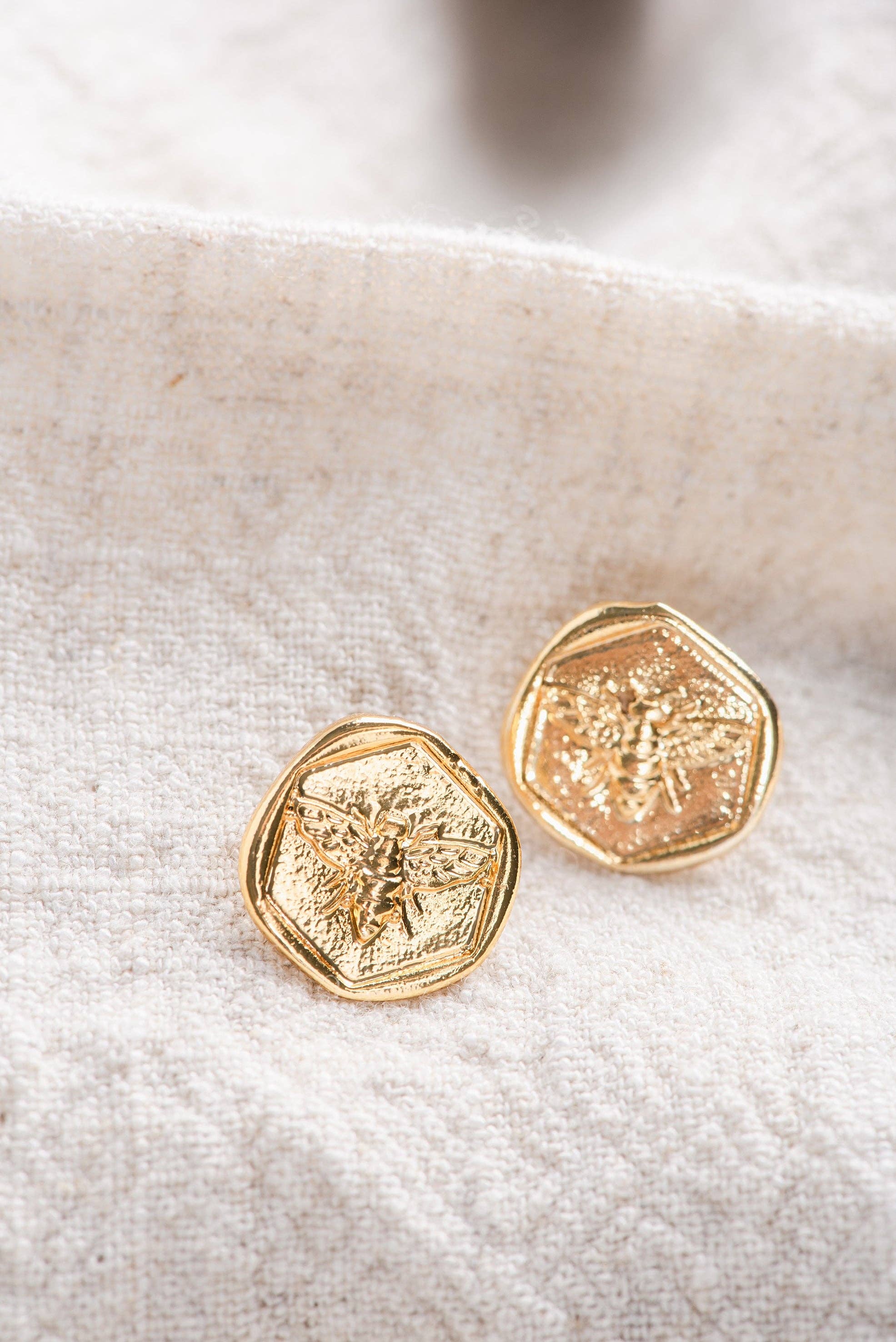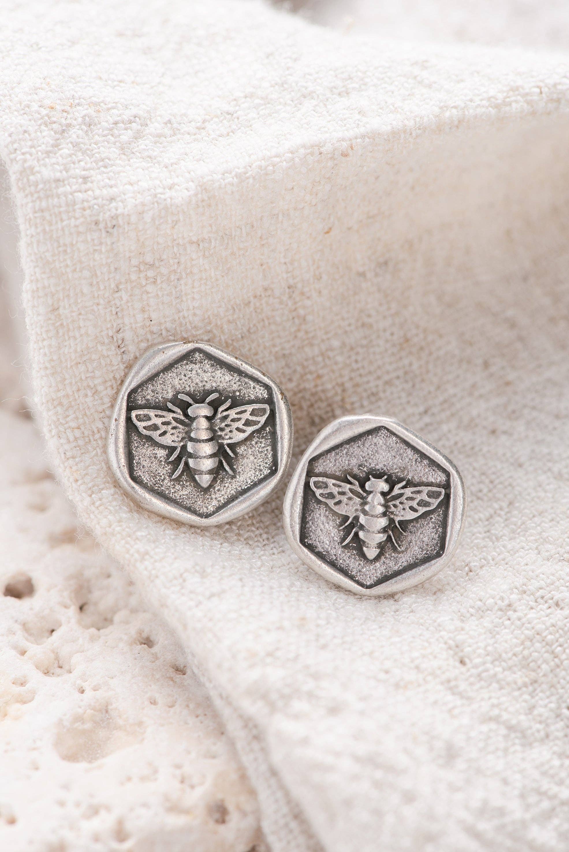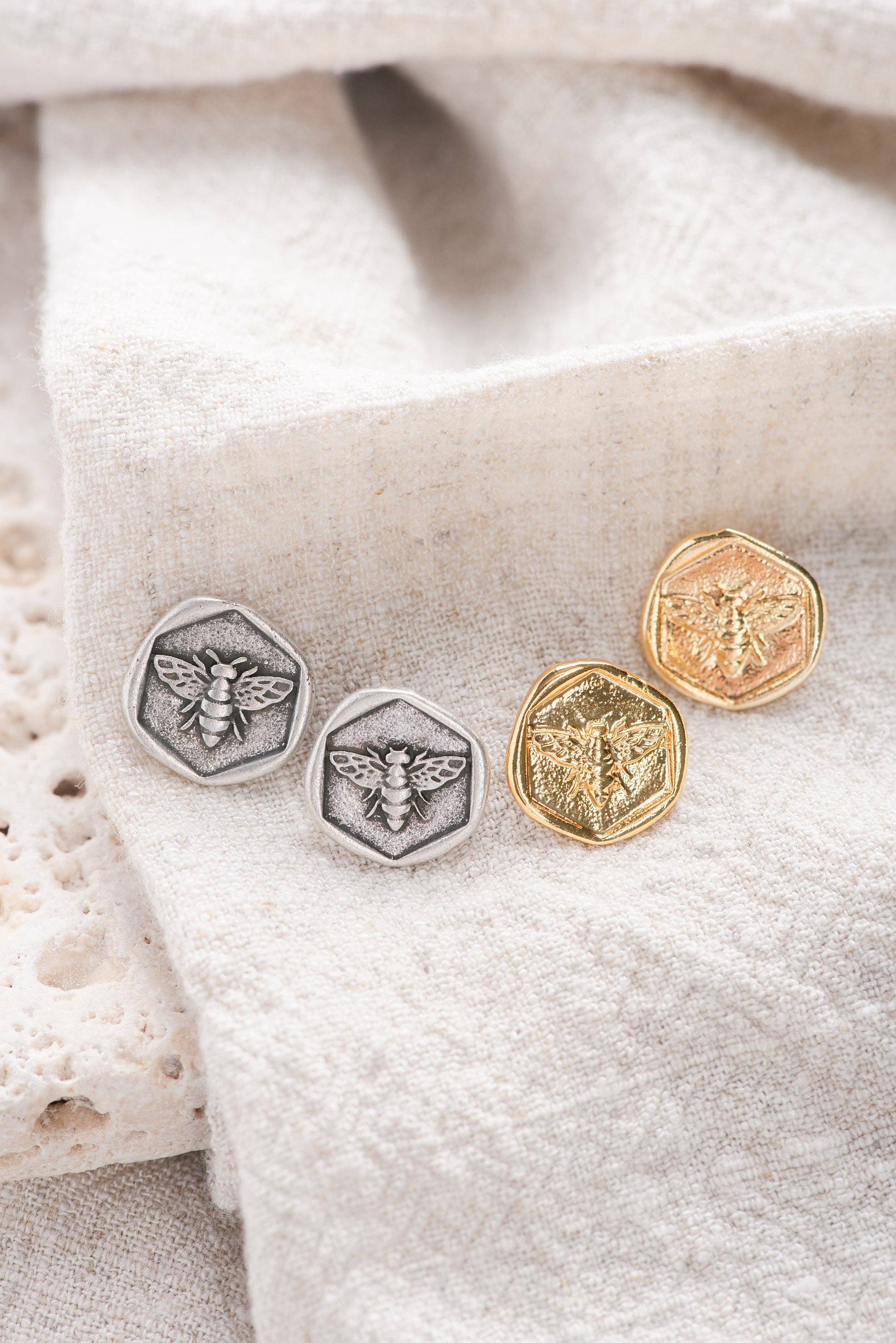 Add a touch of nature-inspired elegance to your everyday look with our Beekeeper Stud Earrings. The delicate wax seal bee design is both charming and sophisticated.