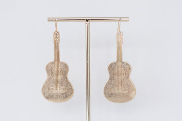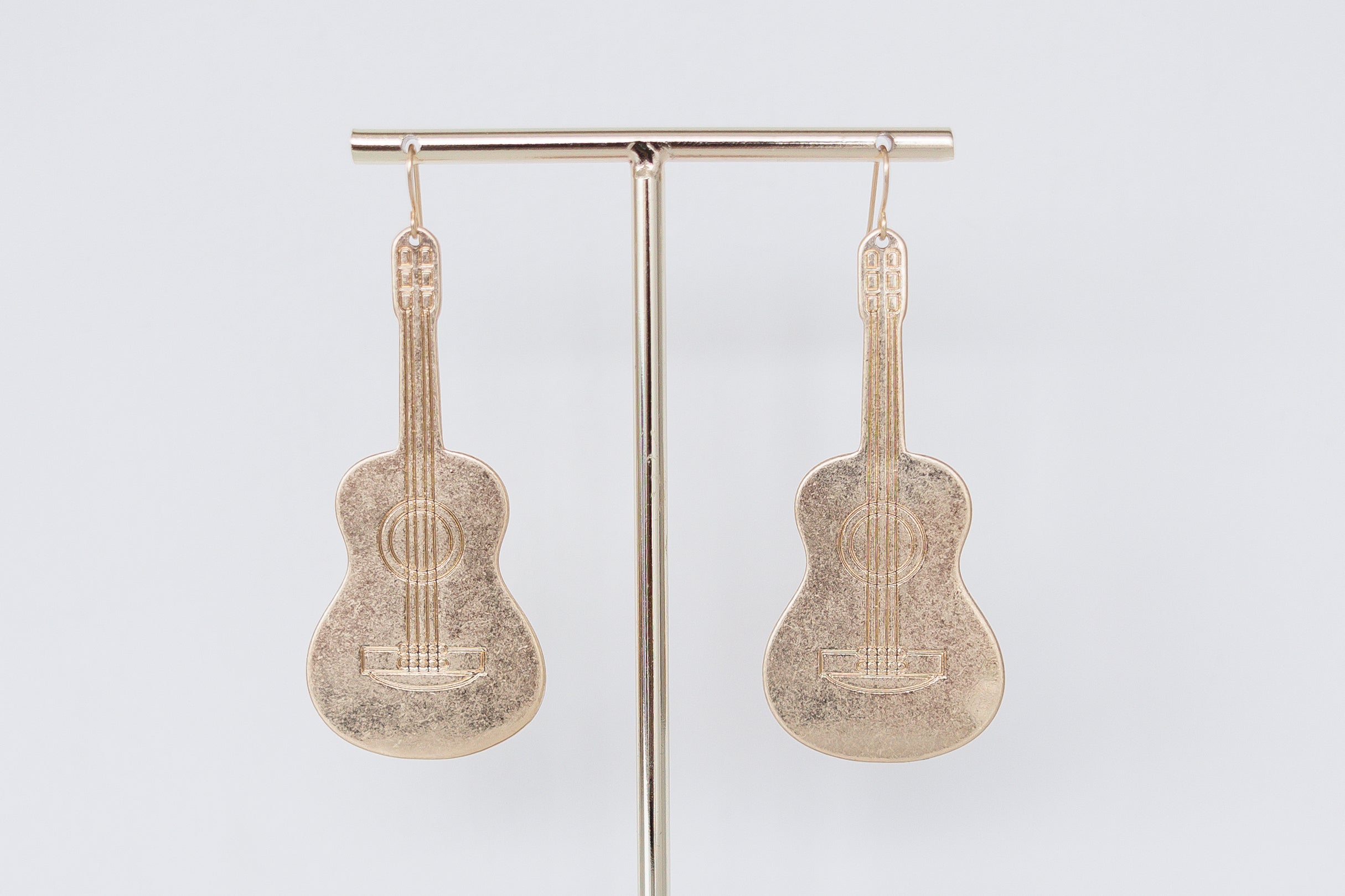 Imagine this: a pair of seriously cool gold guitar earrings, each one a substantial 2.5 inches long. They're not just tiny little studs; these are statement pieces that are ready to strum up some attention!
