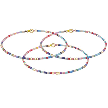 - Made with various colors of randomly mixed 2mm seed beads and 2mm 14k gold-filled beads