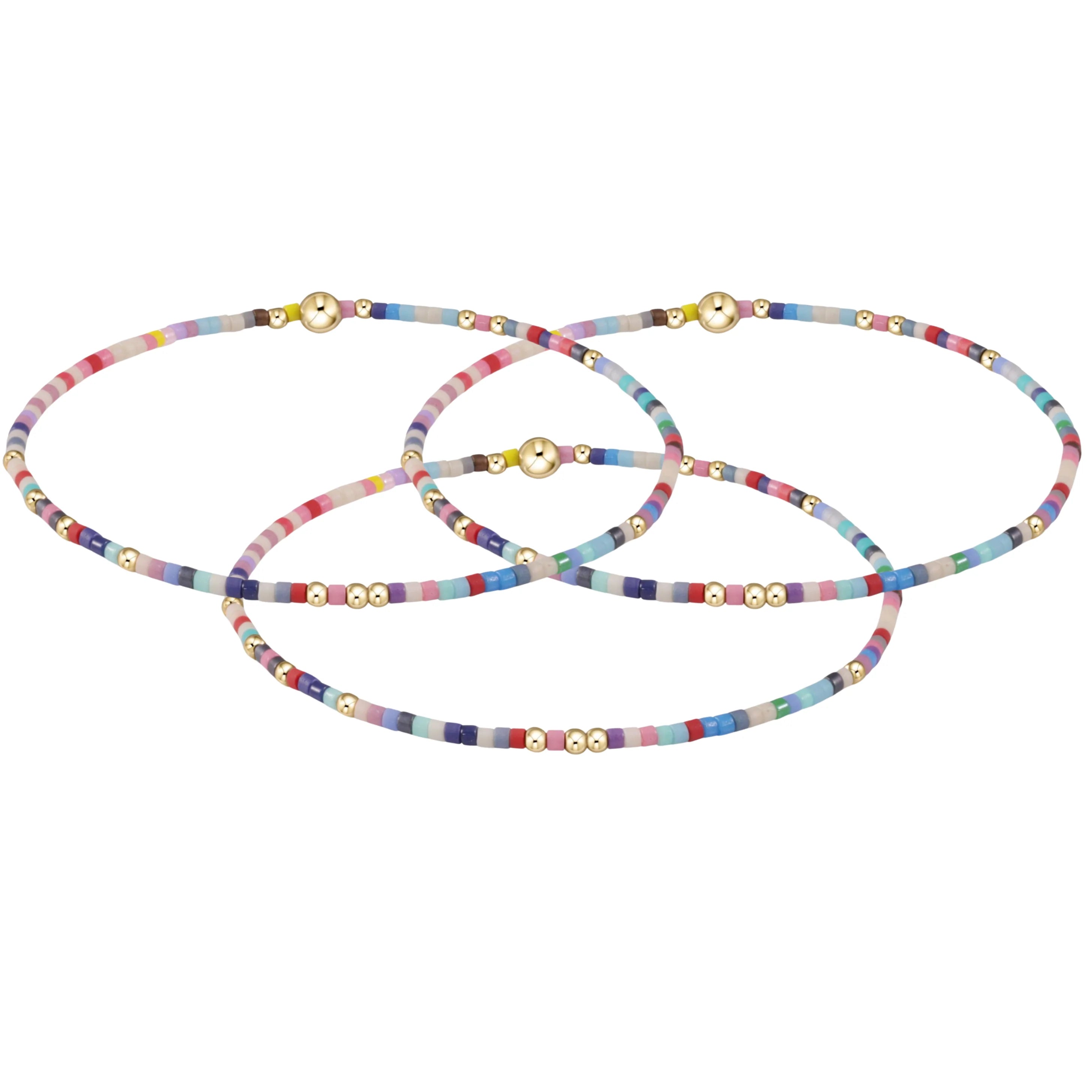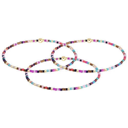 - Hand beaded on high performance elastic for a slight stretch to easily roll on and off your wrist