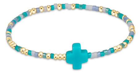 - Made with various colors of randomly mixed 2mm seed beads and 2mm 14k gold-filled beads and Our Signature Cross bead.