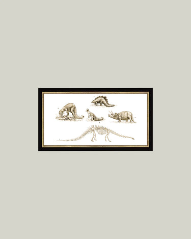 The Dinosaur Discoveries artwork brings science and nostalgia together with a vintage-inspired illustration that sparks curiosity. Printed on canvas and framed in an 11x6 black brass beaded frame, this piece makes a unique accent for studies, libraries, kids’ rooms, or gallery walls. Its slim, horizontal size makes it perfect for layering or tucking into small spaces while still offering a big visual impact.