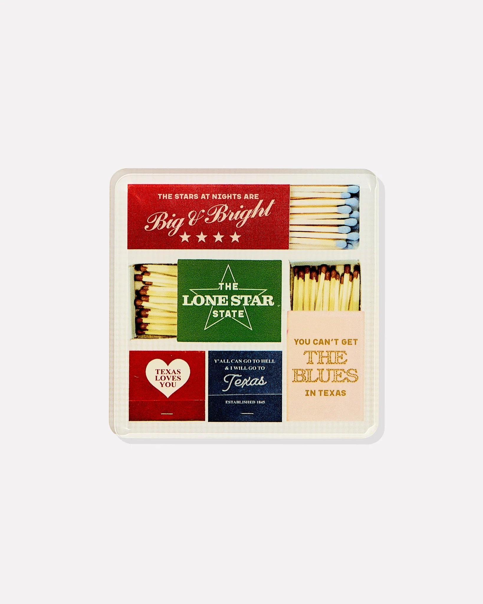 Serve up your drinks with a side of Texas flair using our Texas Matchbook Acrylic Coasters!