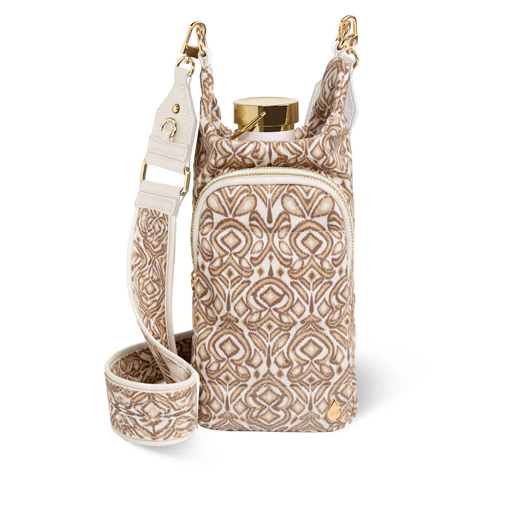 The ORIGINAL puffer water bottle bag, now in the prettiest neutral Ikat print for your inner bohemian. It’s a whole vibe - hands-free hydration, room for your essentials, and cute enough to replace your everyday crossbody on busy days.