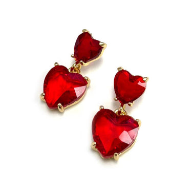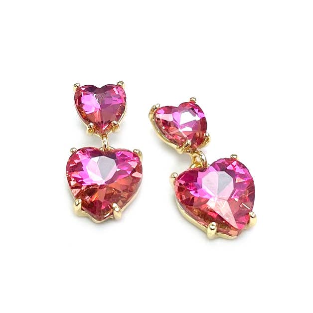 • Heart-shaped glass crystal bead dangle earrings
