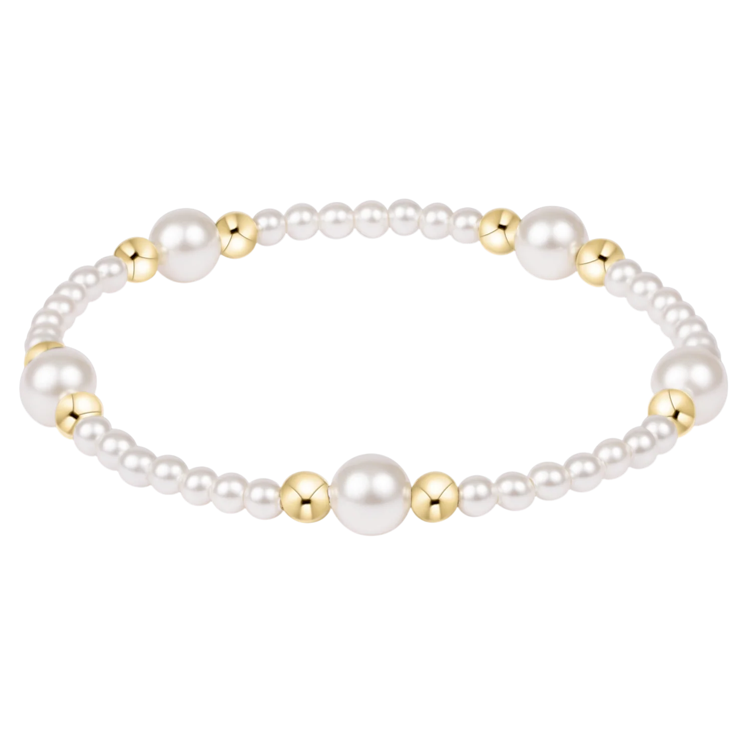 Classic pearls, a touch of gold, and a little reminder of who you are. This Purpose pattern in pearl mixes 3mm and 6mm pearls with 4mm Dignity gold beads for a look that’s timeless, meaningful, and made to live on your wrist.