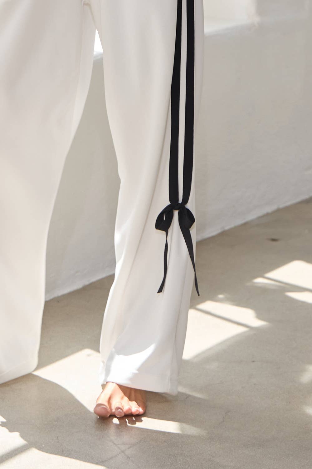 White Track Pants with Bow Detail: Sporty Chic with a Feminine Twist