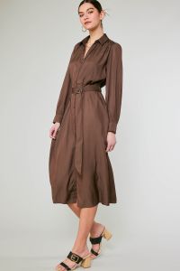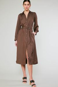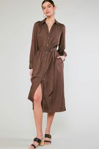 Effortlessly chic and endlessly versatile, the Larissa Mocha Midi Dress is your go-to for everything from lunch dates to evening outings. This long-sleeve shirt dress features a split neck and classic collar with a button-down front, giving it just the right mix of structure and ease. A self-tie waist lets you define your silhouette, adding a flattering touch to the flowing midi length. Made from 100% polyester, it’s soft, lightweight, and drapes beautifully for a look that feels as comfortable as it is stylish.