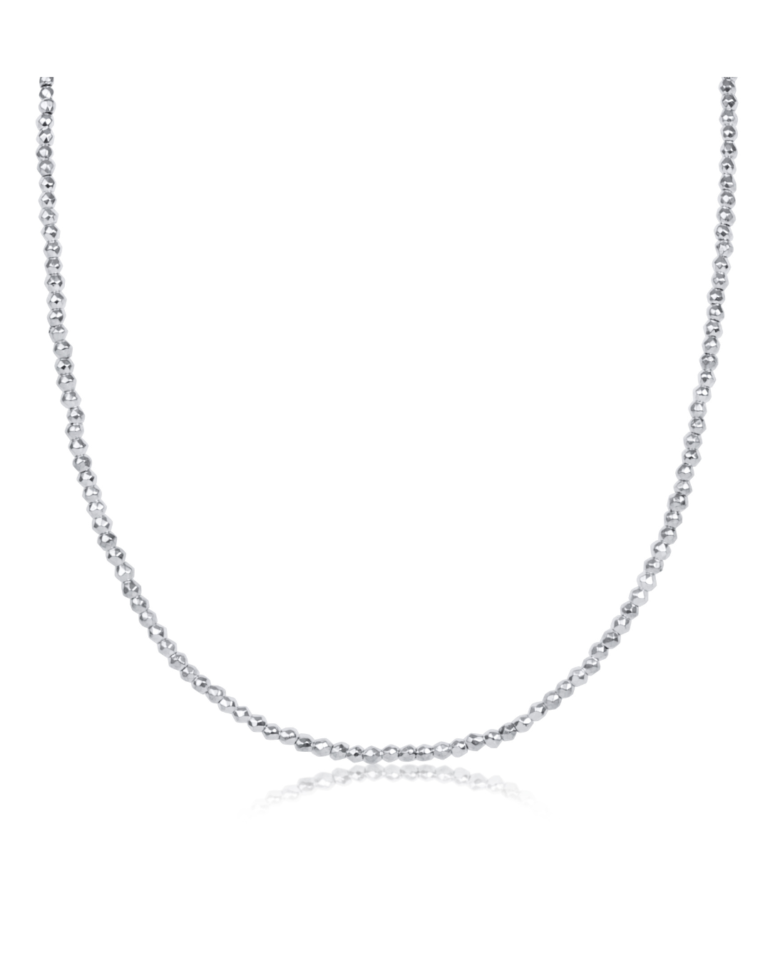 17" CHOKER BRIGHT SILVER FACETED HEMATITE 2MM BEAD