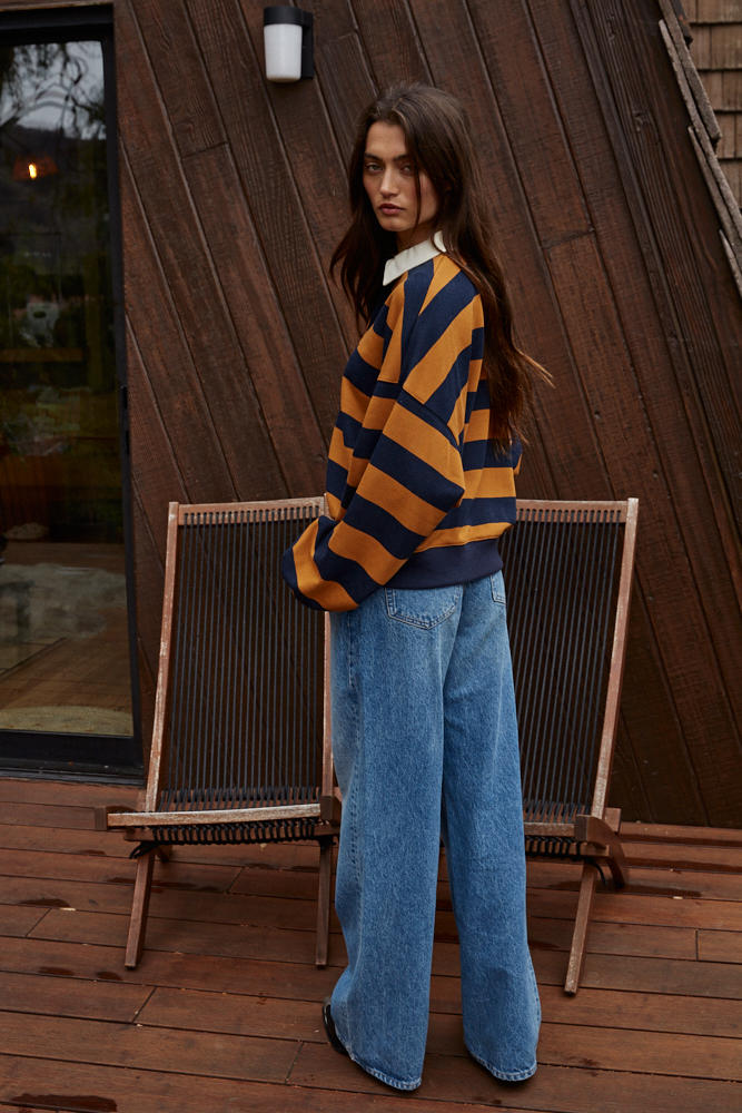 The Amerie Pullover is a modern classic with a casual twist, crafted in soft French terry knit with timeless stripes and a polished collar neckline. Its slightly cropped length and relaxed fit make it an easy throw-on piece that transitions from coffee runs to casual Fridays. Lightweight yet cozy, it’s designed for year-round wear and layering.