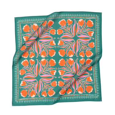 Meet Winnie, your ride-or-die, big-hearted bestie in bandana form. With a lush green backdrop and vibrant orange and pink florals, this premium cotton bandana is as bold and caring as her personality. Soft, durable, and hand screen-printed in India, it’s designed for endless styling possibilities. Wear it around your neck, in your hair, tied to a tote, or even on your pup because a pop of color and a dash of heart never go out of style.
