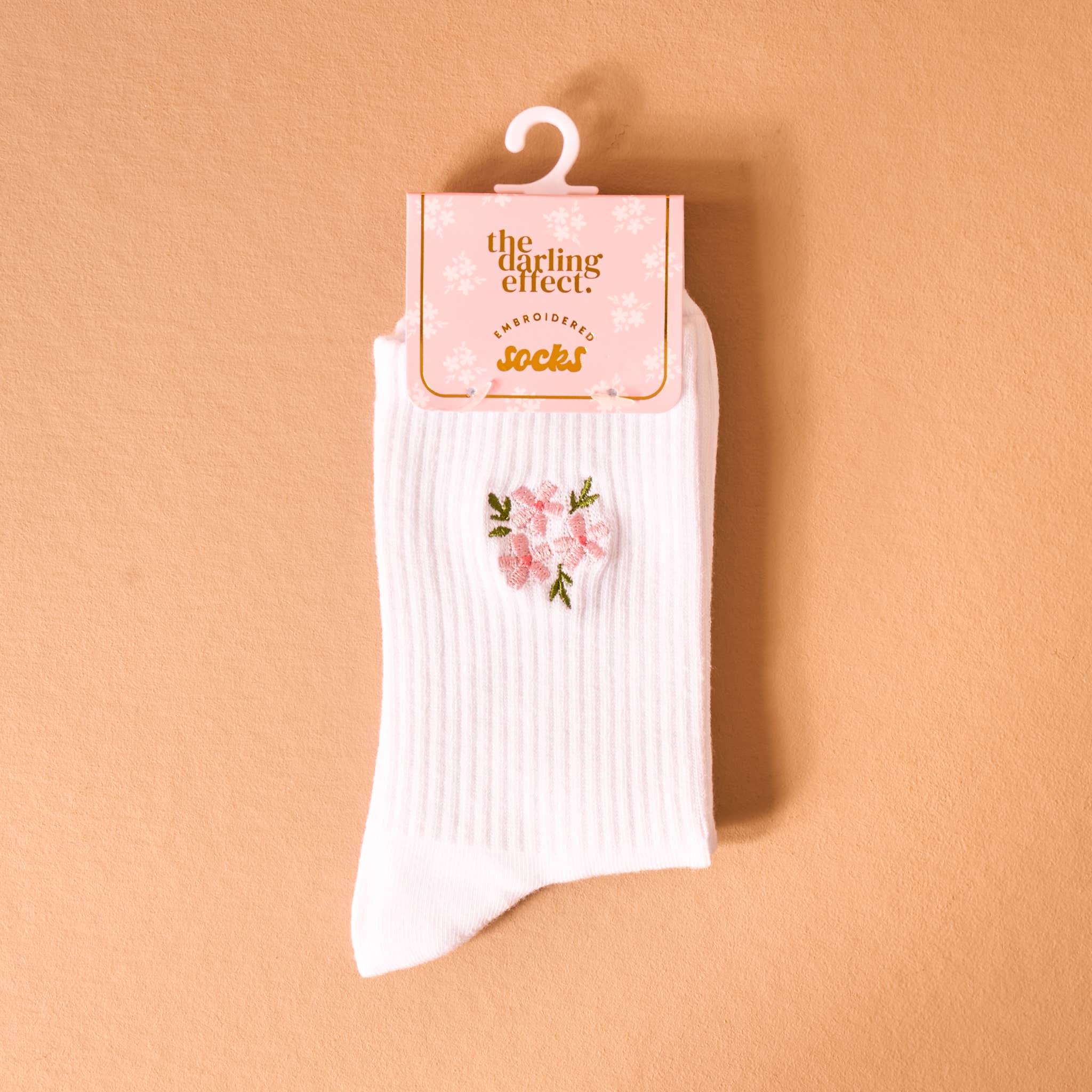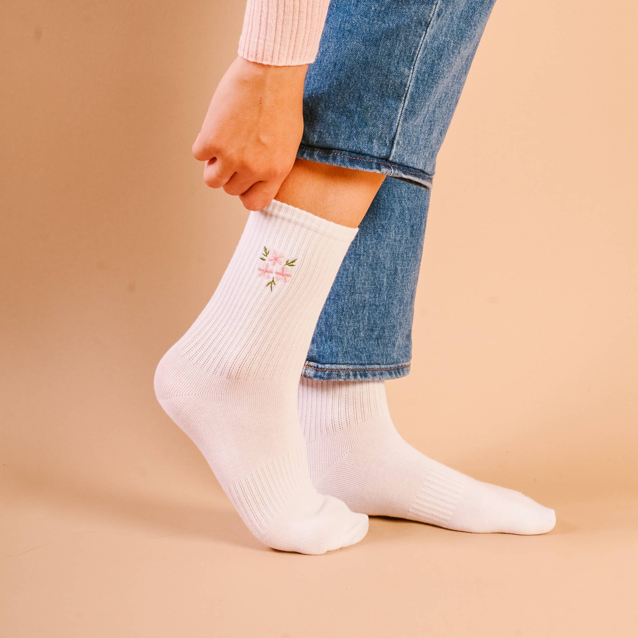These embroidered crew socks add a feminine flourish to your everyday essentials. The soft, breathable fabric keeps your feet cozy all day, while the delicate floral embroidery in pink brings just the right touch of charm. With a flexible stretch that fits women’s sizes 7–10, they’re as practical as they are playful.
