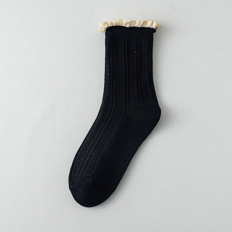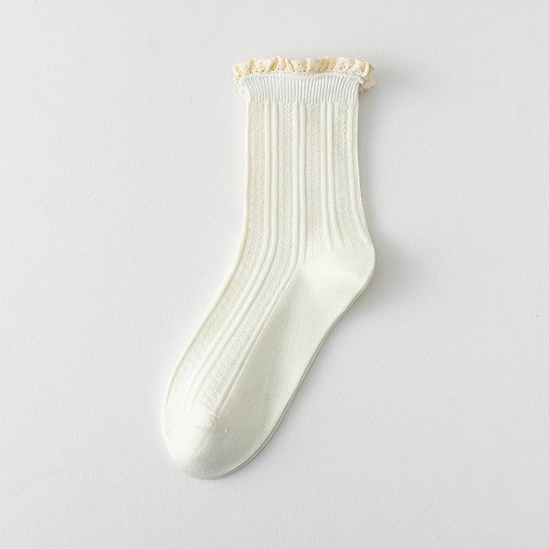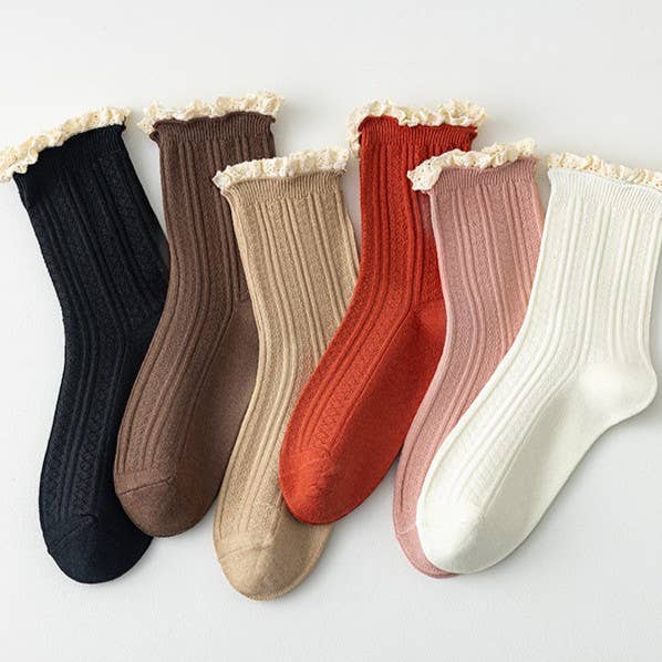 These socks are one of those little extras that make an outfit feel finished. The lace twist pattern adds a soft, vintage-inspired touch, while the ankle height and subtle ruffle at the top keep them feeling current and on trend.