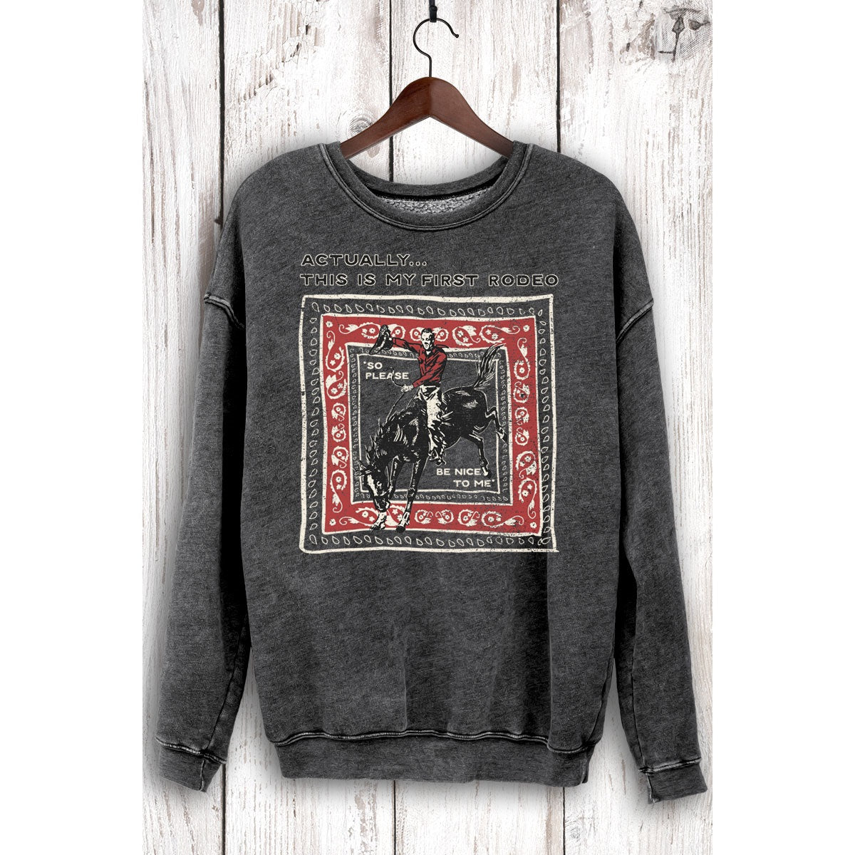 This sweatshirt has that perfectly worn-in, vintage feel from day one. Featuring a fun “This Is My First Rodeo” graphic, it’s designed with a soft, brushed fabric and finished using special enzyme dye and mineral wash processes that give it an authentic, lived-in look you’ll love.