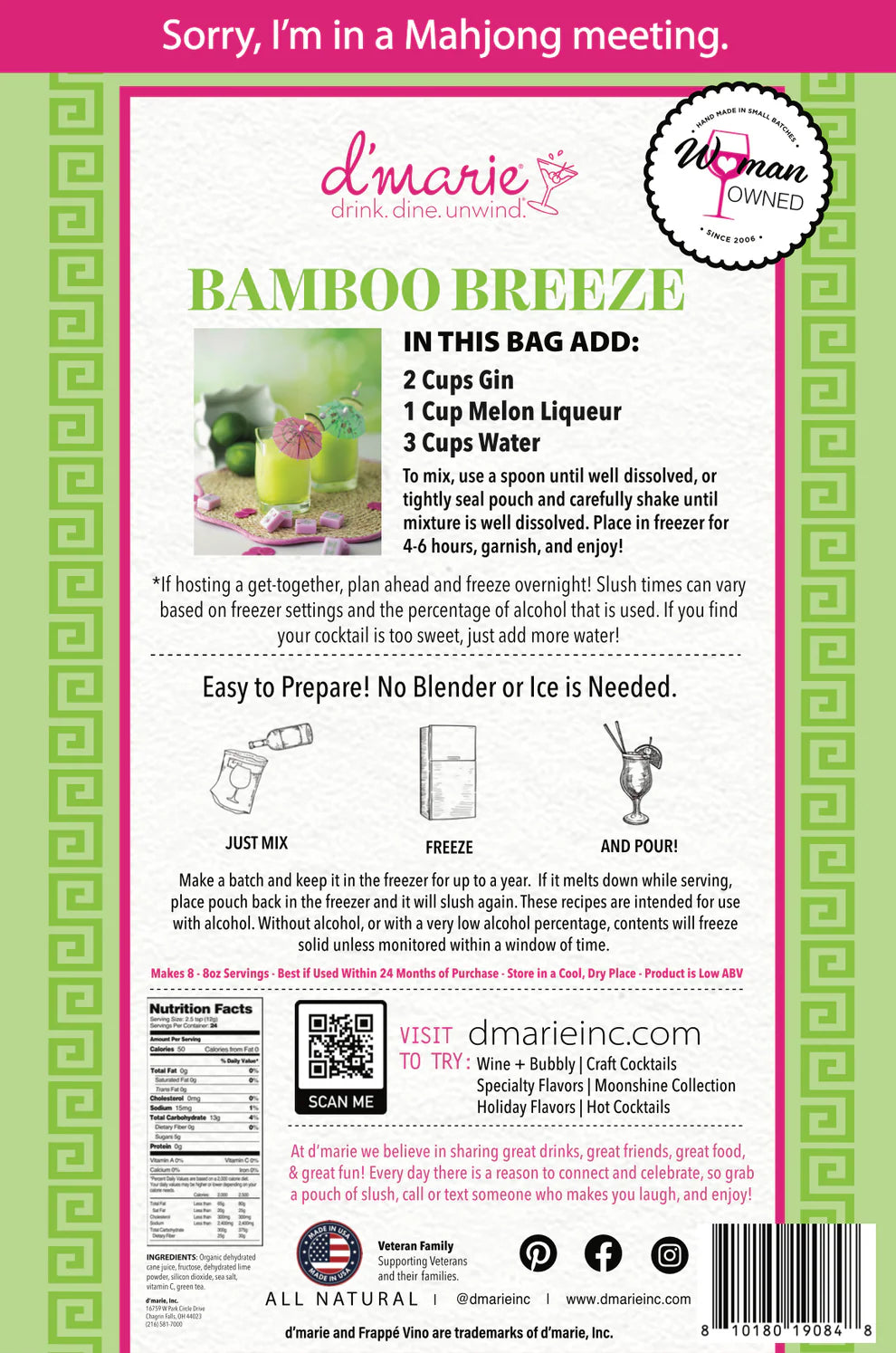 Bring a touch of the tropics to your glass with our Bamboo Breeze Cocktail Slush Mix! Made with real lime, this refreshing blend combines the crisp zest of citrus with the smooth sweetness of melon liqueur and the botanical notes of gin. It’s the perfect cocktail to transport you to a breezy island getaway, no plane ticket required.