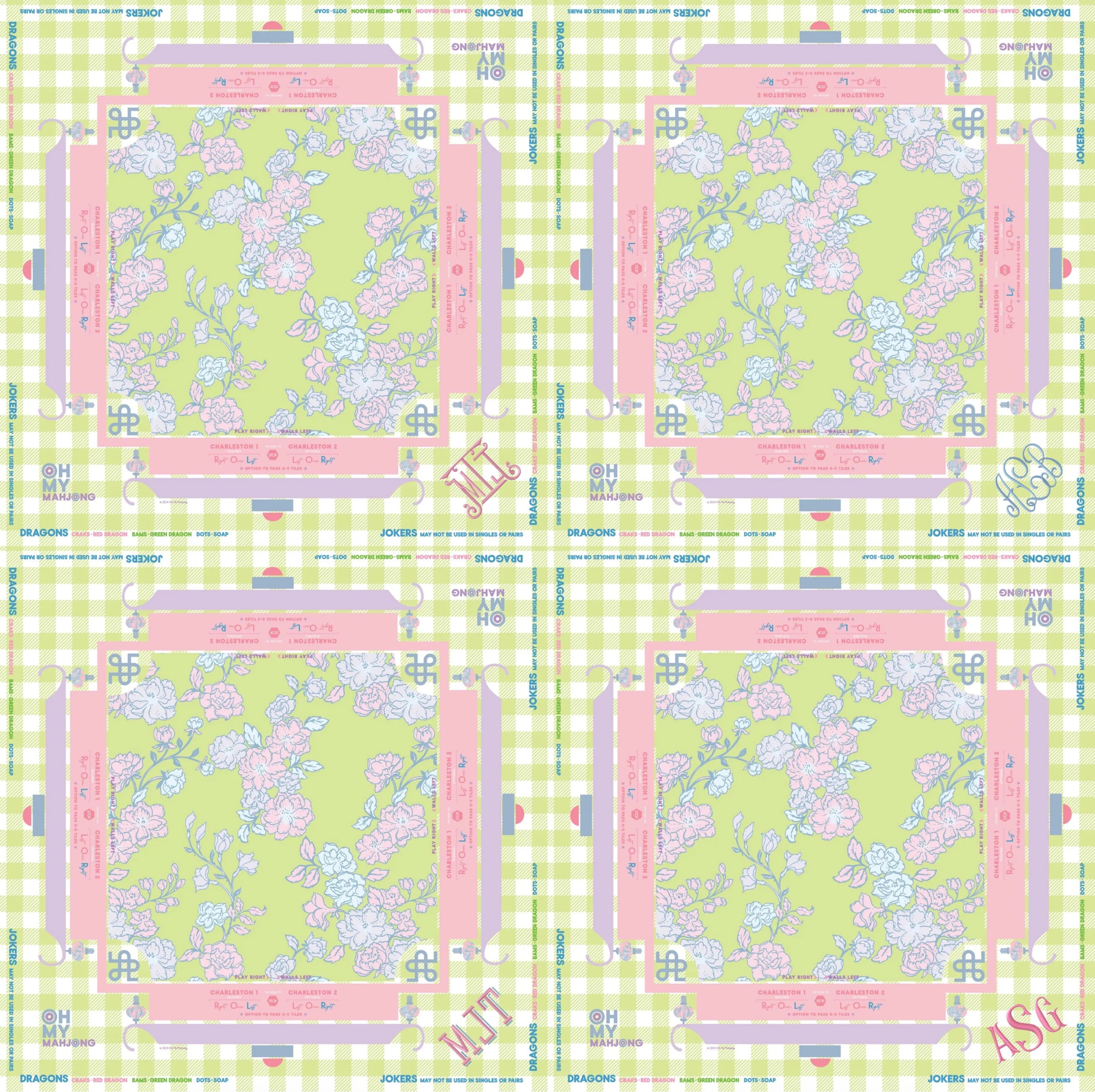 Step into a sweeter style of game night with the Garden Party Mahjong Mat. This charming mat brings together soft pastel florals, a touch of green gingham, and the prettiest frilly details for a look that feels feminine, fresh, and delightfully fun. Crafted from durable neoprene, it features a smooth playing surface with a non-slip backing to keep every tile right where it belongs.