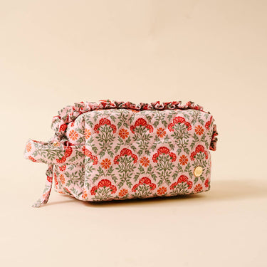 Keep your must-haves neat and within reach with our Essentials Quilted Cosmetic Pouch. Crafted from soft quilted fabric in a timeless dusty rose, it’s finished with a small carry handle and gold zipper hardware for a touch of everyday elegance. Inside, our signature wipeable lining makes cleanup a breeze, so you can tote your beauty essentials with ease—whether you’re at home or on the go.