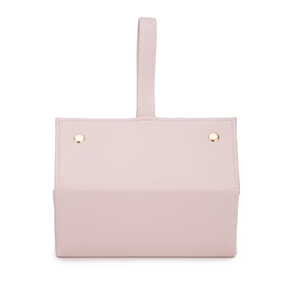 It snaps shut nice and securely, so you don't have to worry about anything falling out, and it even has a handy little loop so you can hang it up wherever you need it. Perfect for when you're getting ready!