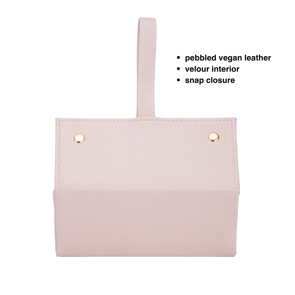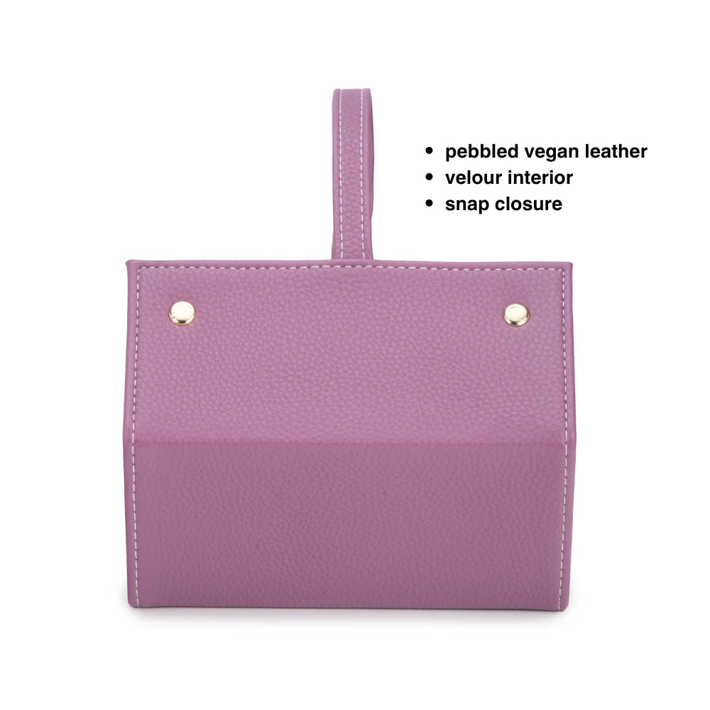 First off, it feels super luxurious because it's made from this gorgeous pebbled vegan leather on the outside, and the inside is all soft and velvety. It's like giving your eyewear and jewelry a little spa day!