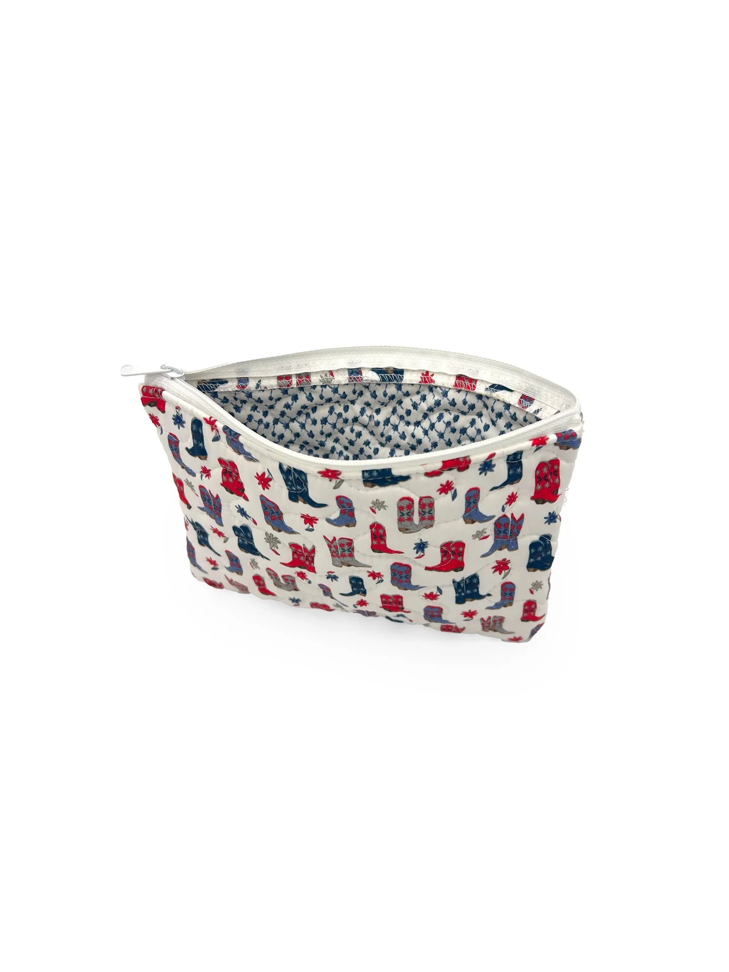 Beautifully quilted and proudly made in Texas, this small-but-mighty makeup bag brings a classic touch to your everyday routine. Whether it lives in your handbag, suitcase, or vanity drawer, it’s designed to hold your go-to beauty items in style.