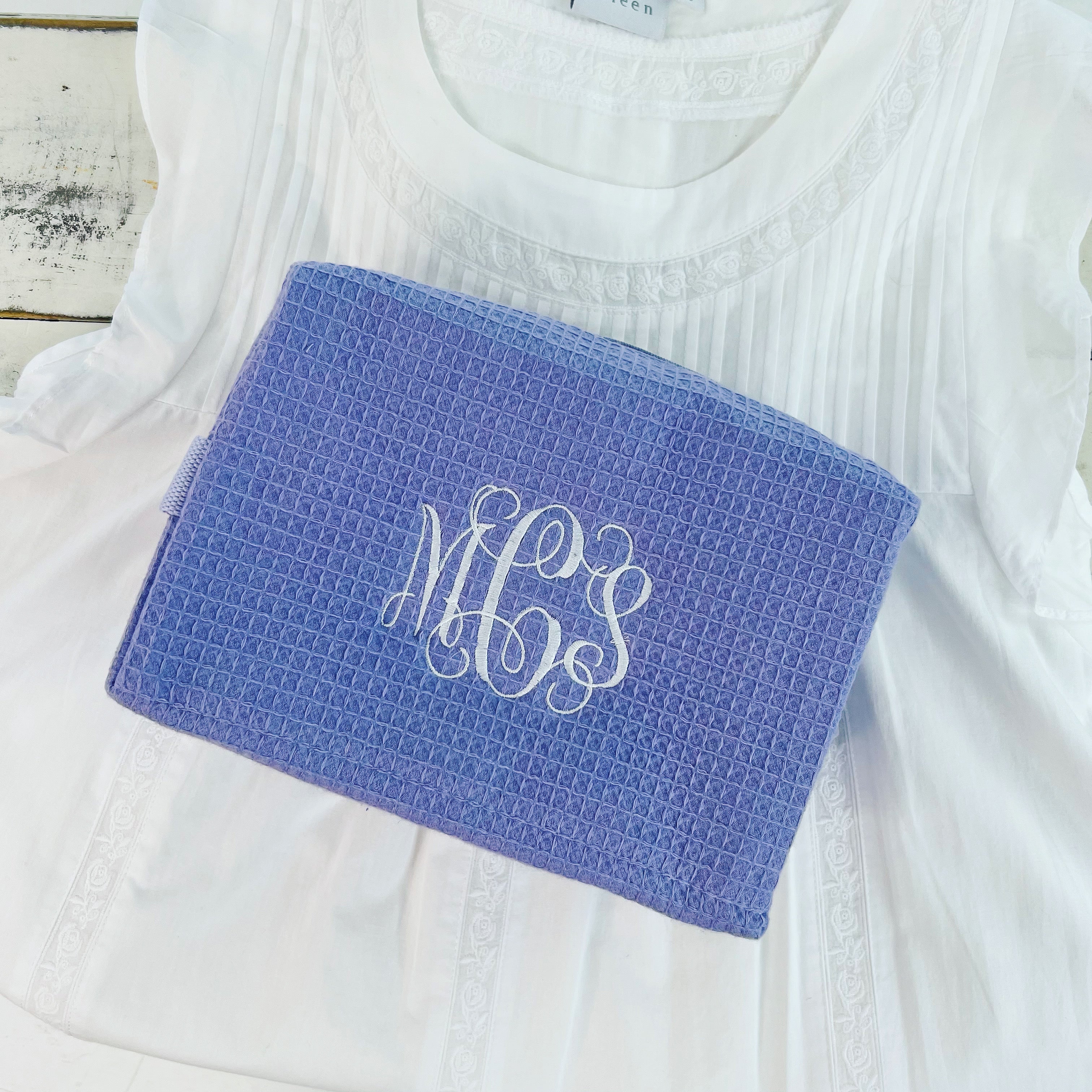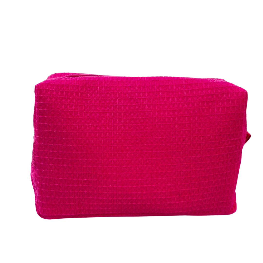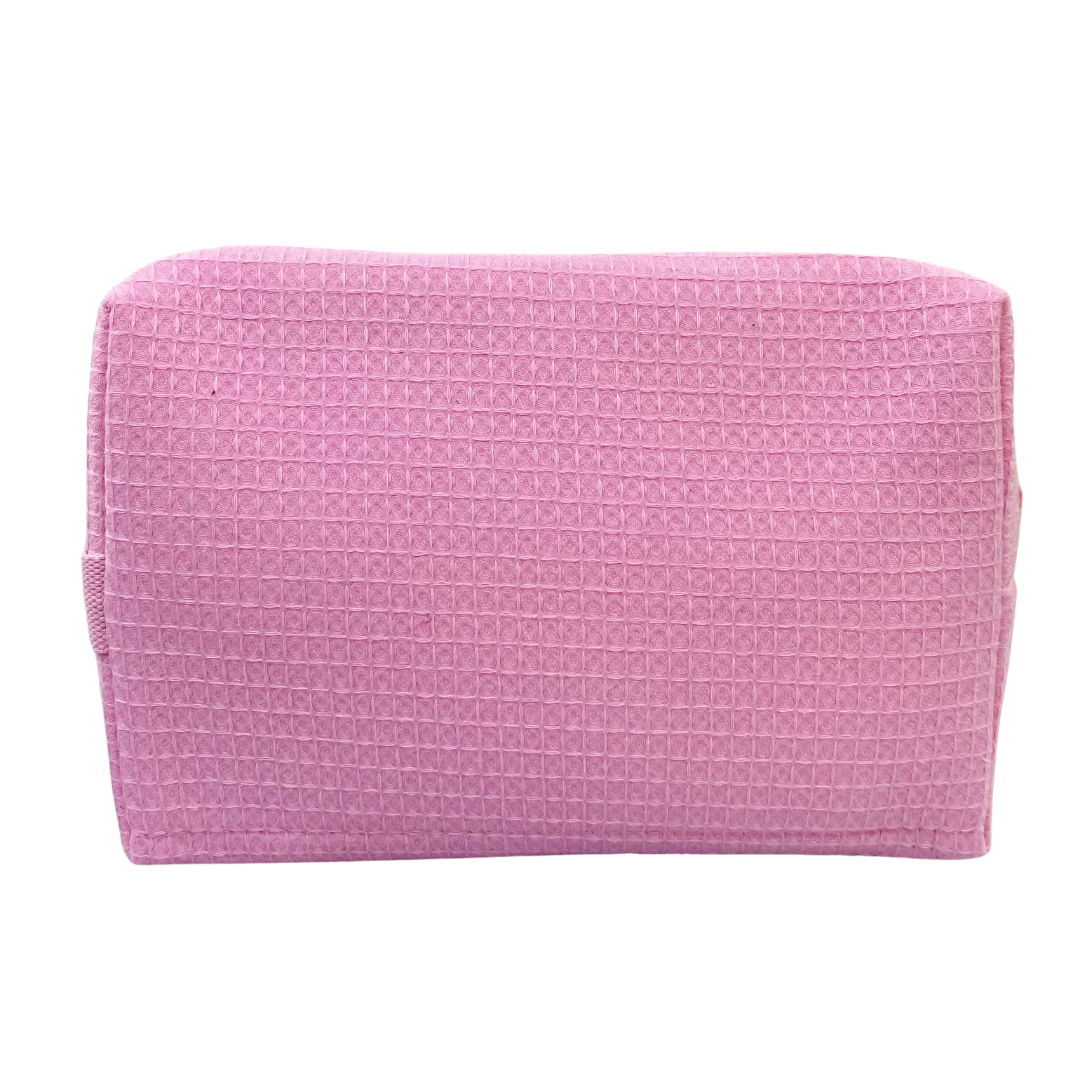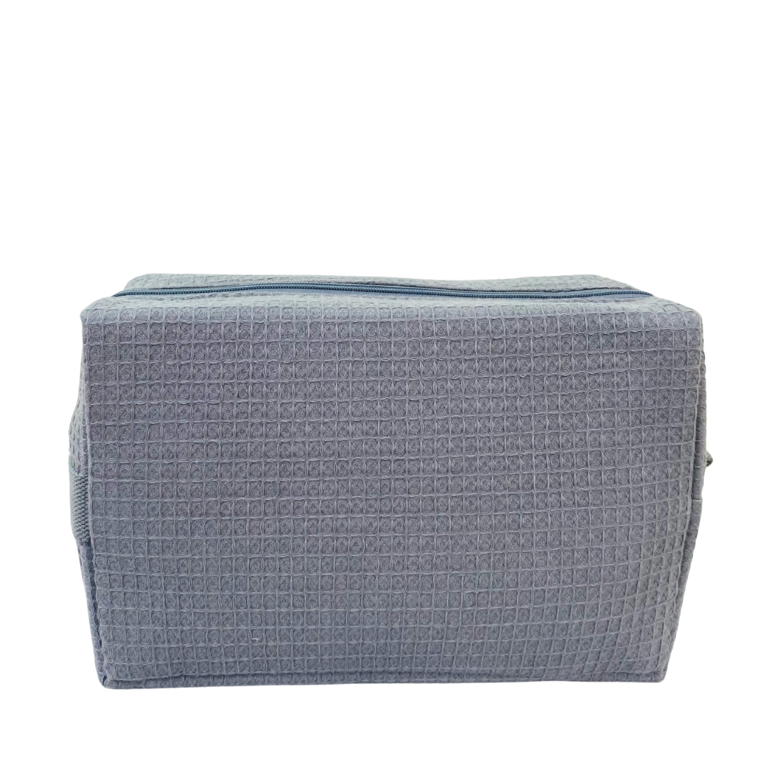 Crafted from high-quality cotton waffle weave fabric, this cosmetic bag is both durable and stylish. Its spacious interior is ideal for storing makeup, skincare products, toiletries, and more. Plus, the zippered closure ensures that your items stay secure while on the go.
