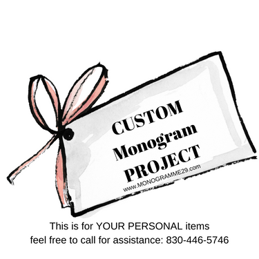 Need your own item embroidered? This is what you choose!! Checkout the pricing guide to help you know how things are priced. You are also welcome to email any questions you have to service@monogramme29.com at any time!