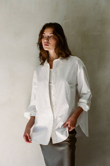 The Abbey White Shirt is an essential wardrobe staple. Crafted from 100% breathable cotton, this classic button-down shirt offers a timeless and sophisticated look. The crisp white finish and classic collar make it effortlessly versatile, perfect for dressing up with tailored pants or down with jeans.