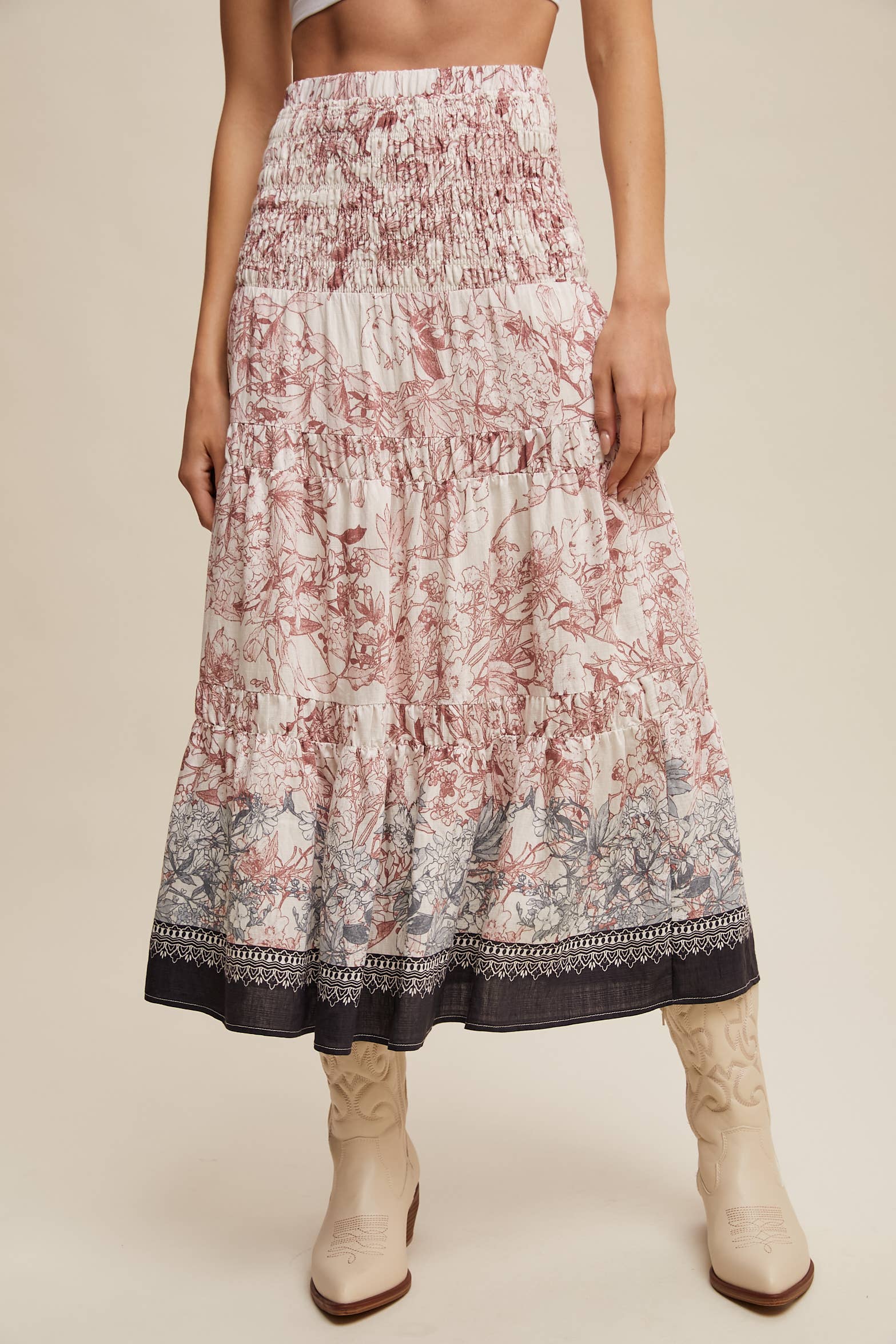 One piece, two looks, and about a hundred ways to wear it. The Sienna is your easy, vacation-ready favorite that works as a breezy smocked maxi skirt or a chic strapless tube dress. The vintage-inspired floral print in soft red and blue feels effortlessly boho, and that darker contrasting hem gives it a polished finish.