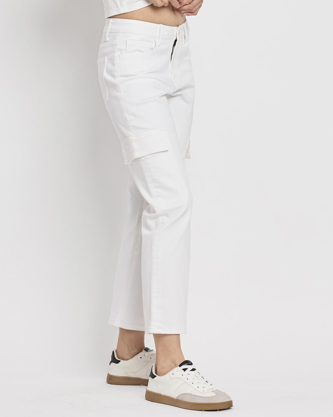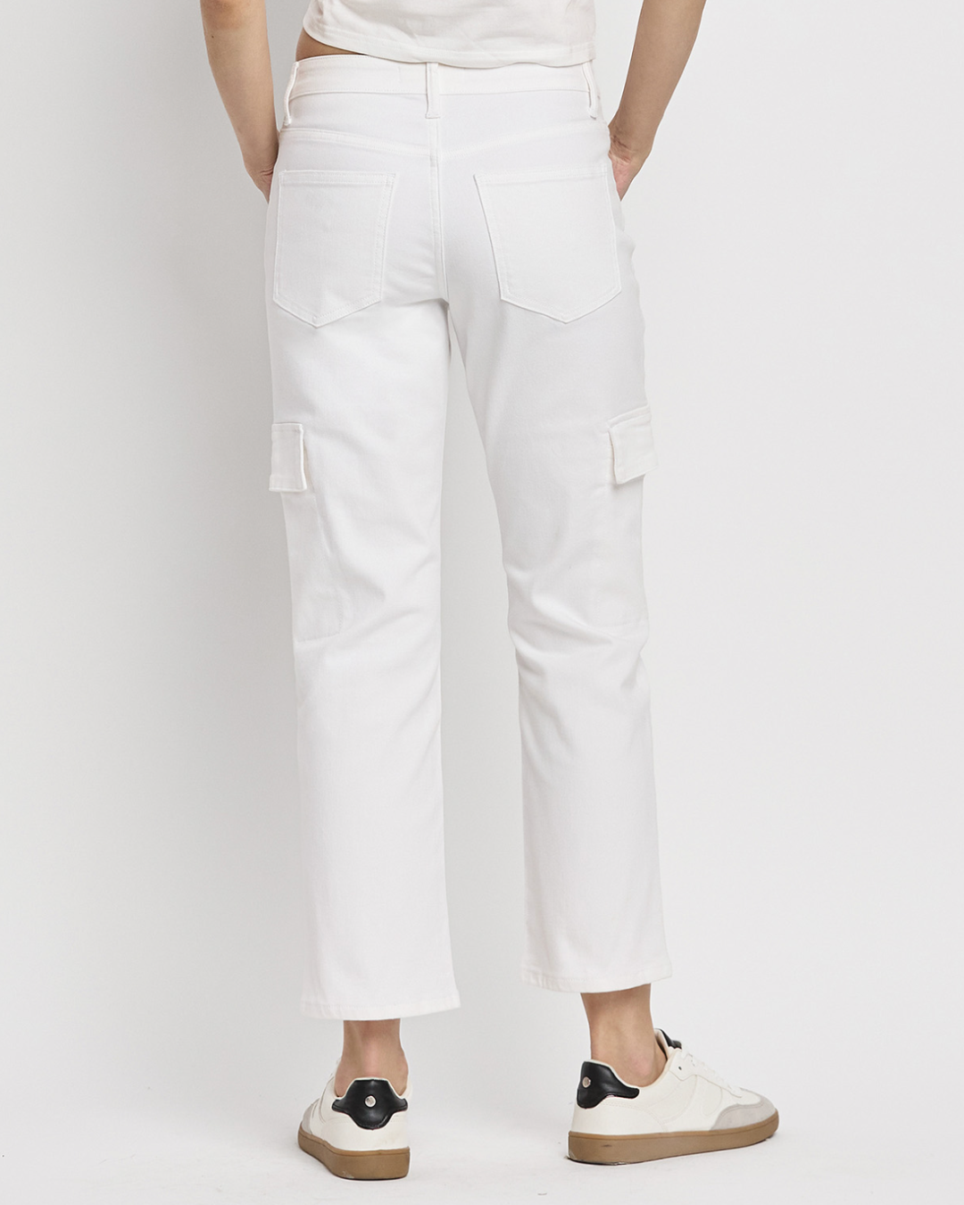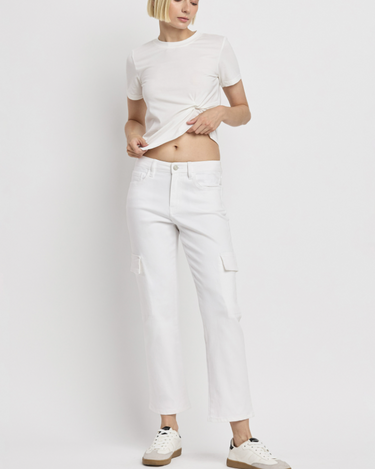 Elevate your casual style with our Dani High Rise Cargo Straight Leg Jeans in White. These jeans offer the perfect blend of comfort and chic, featuring a high-rise waist and a cropped length. The cargo design adds a trendy touch, making these jeans a versatile addition to your wardrobe.