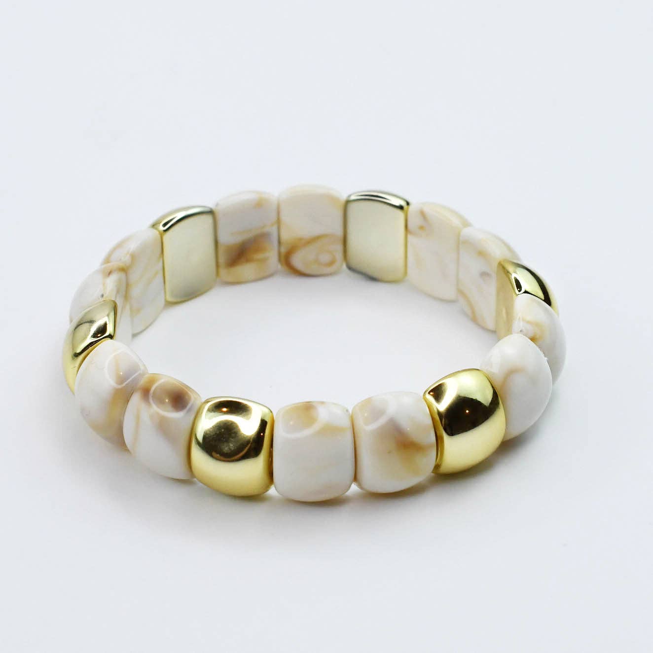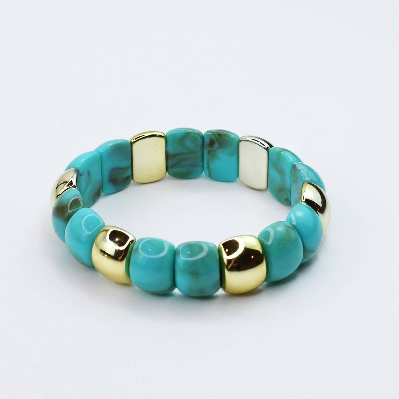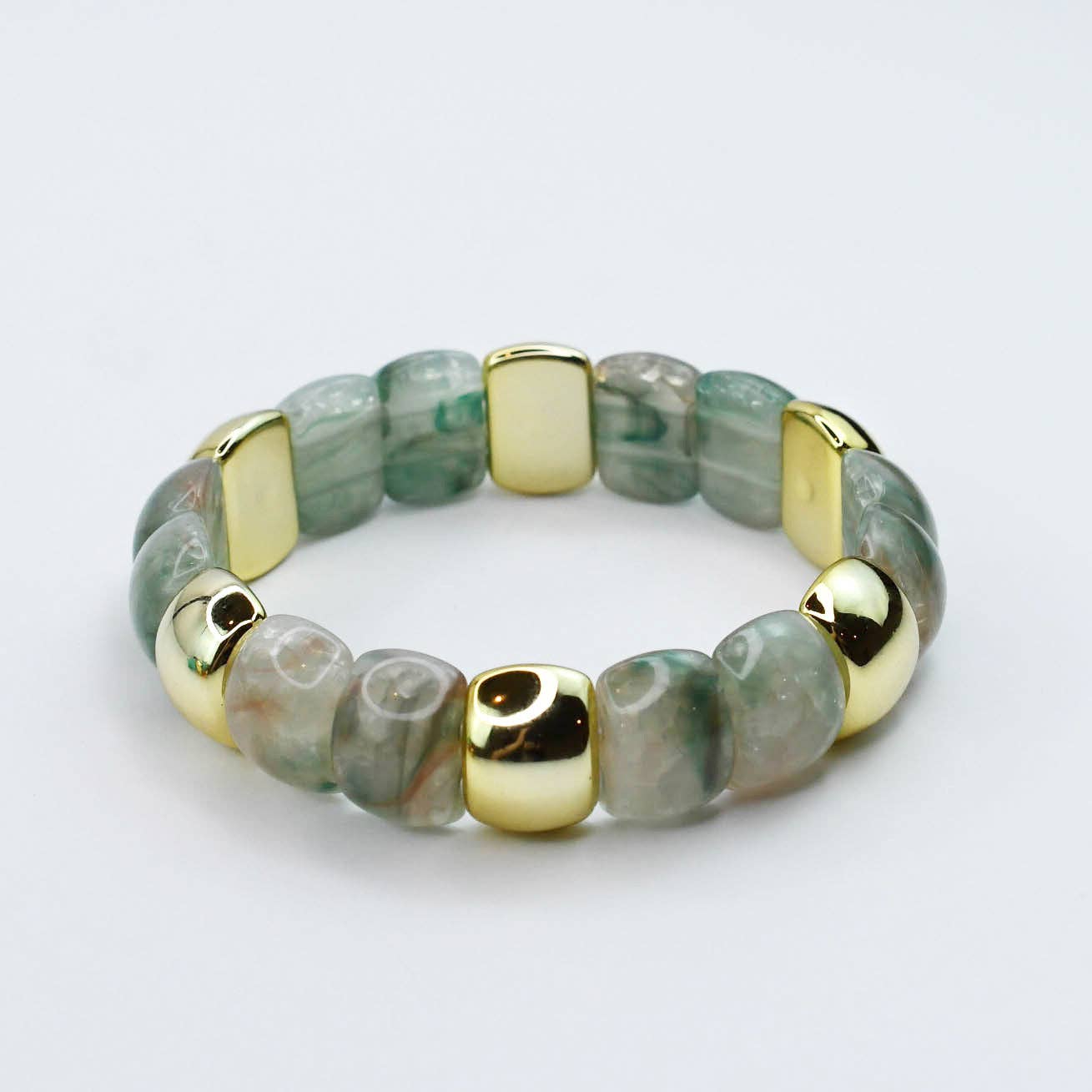 - Chunky gemstone-inspired beads with shiny gold details