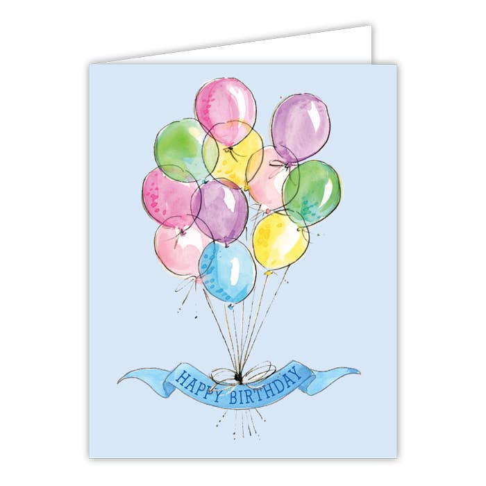 Send a burst of joy with this cheerful "Happy Birthday" greeting card. Featuring a delightful design of handpainted balloons, this card is sure to brighten any recipient's day.