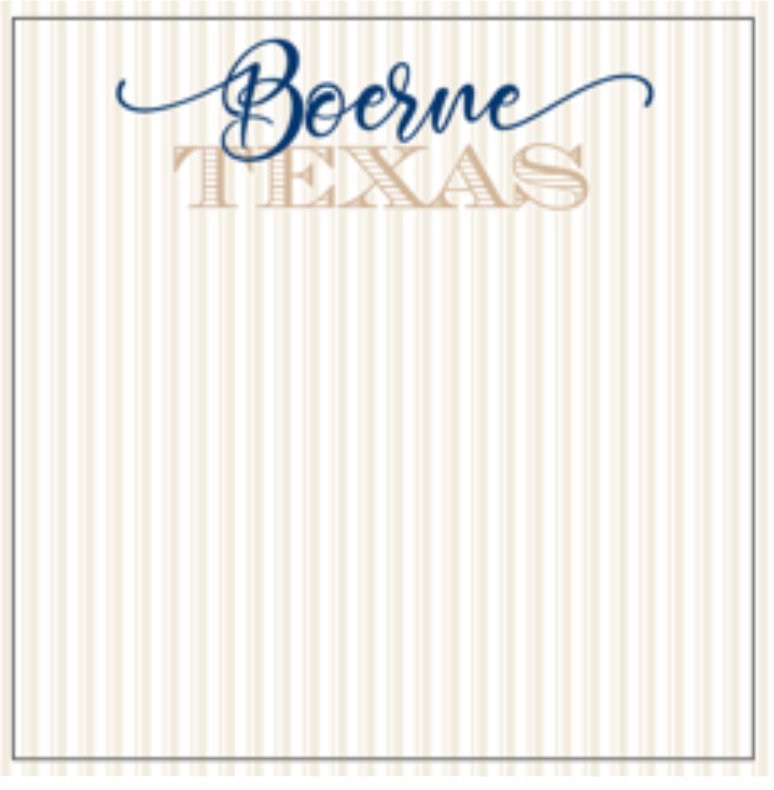 Add a touch of luxury to your to-do list with our Luxe Notepad. Its classic pinstripe and playful script is sure to make it the perfect gift for proud Boerne locals. Get yours today and jot down your tasks with a sense of style!