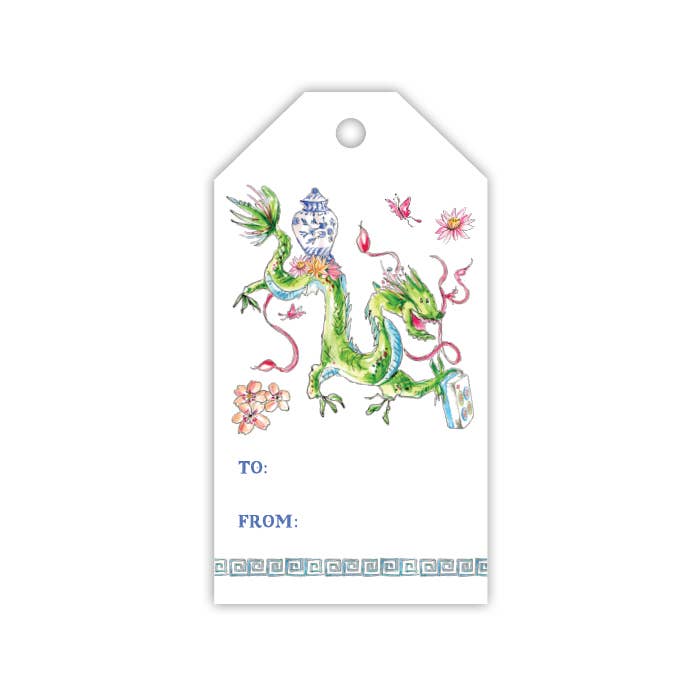 Mahjong Dragon Blue Chinoiserie Pots Gift Tag