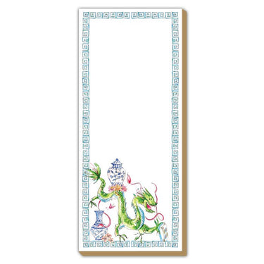 Stay organized in style with the Mahjong Dragon Blue Chinoiserie Pots Luxe Skinny Pad! Slim, chic, and oh-so-handy, this list pad is perfect for jotting down everything from grocery lists to last-minute reminders.