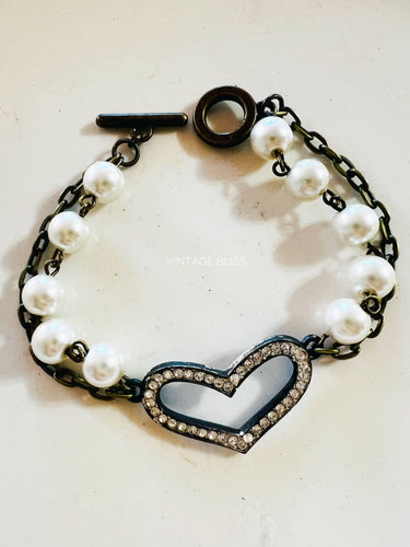 Rhinestone Heart Pearl Beaded Bracelet