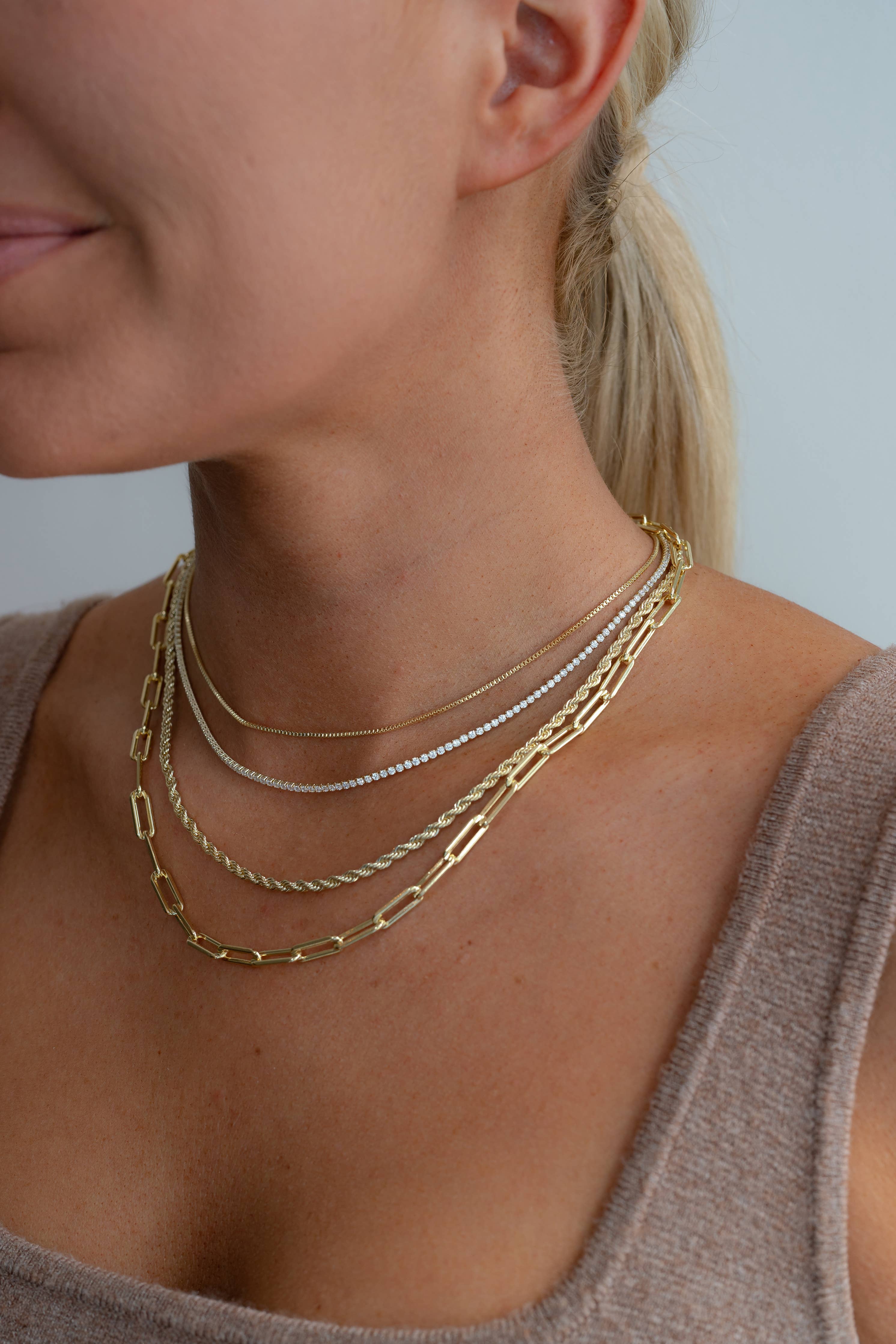 Introducing the Leo Chain, a must-have staple in your jewelry collection. This classic paperclip chain necklace is the perfect accessory for effortless layering, adding a touch of charm to any outfit.