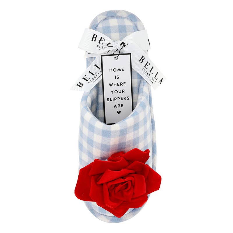Blue Gingham + Red Velvet Rosette Slippers