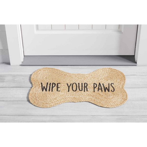 "Welcome your four-legged friends with a playful door mat that reminds them to "wipe their paws" before entering. Perfect for dog lovers, this fun mat adds a charming touch to any entrance. Greet guests and pups alike with a smile and a nod to good manners!"